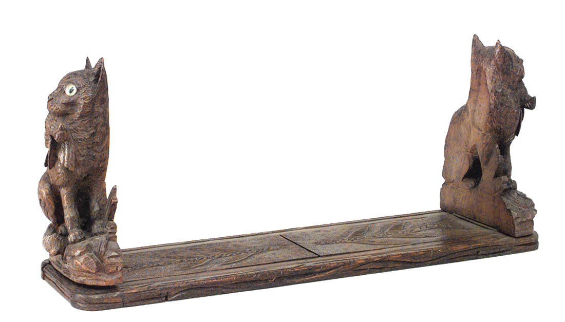 Rustic Black Forest (19th Century) carved walnut adjustable bookends with cat figures..