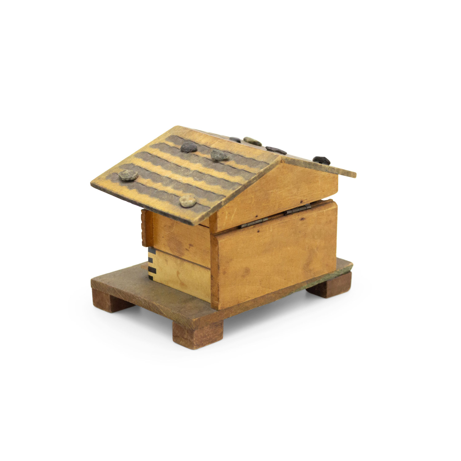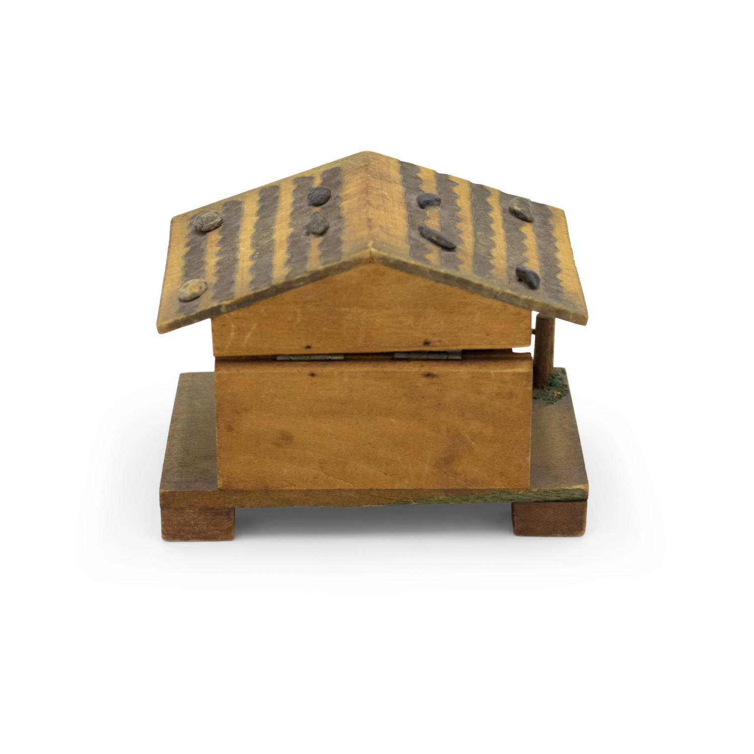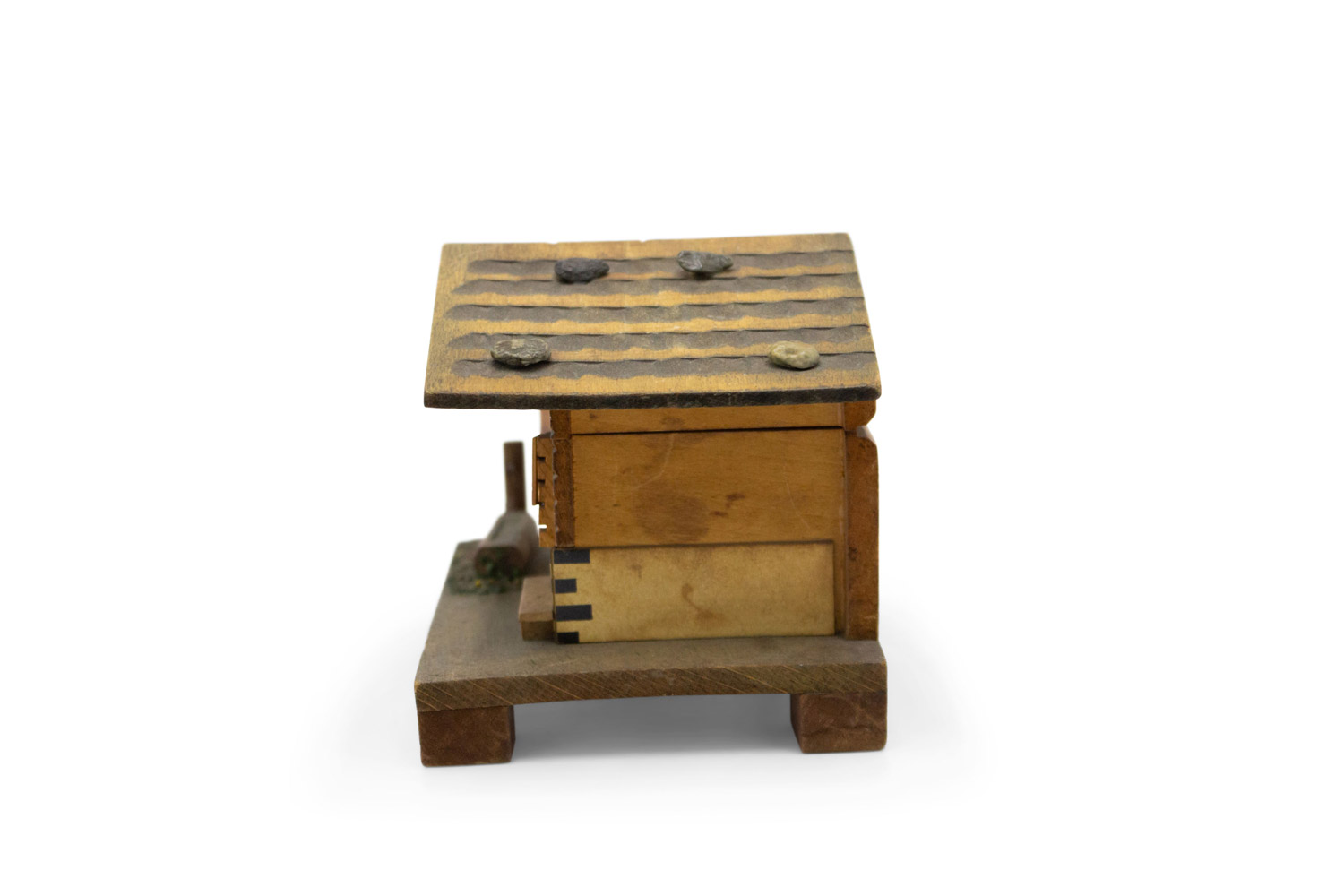 Rustic Continental-style (19/20th Century) small house-shaped wood music box..