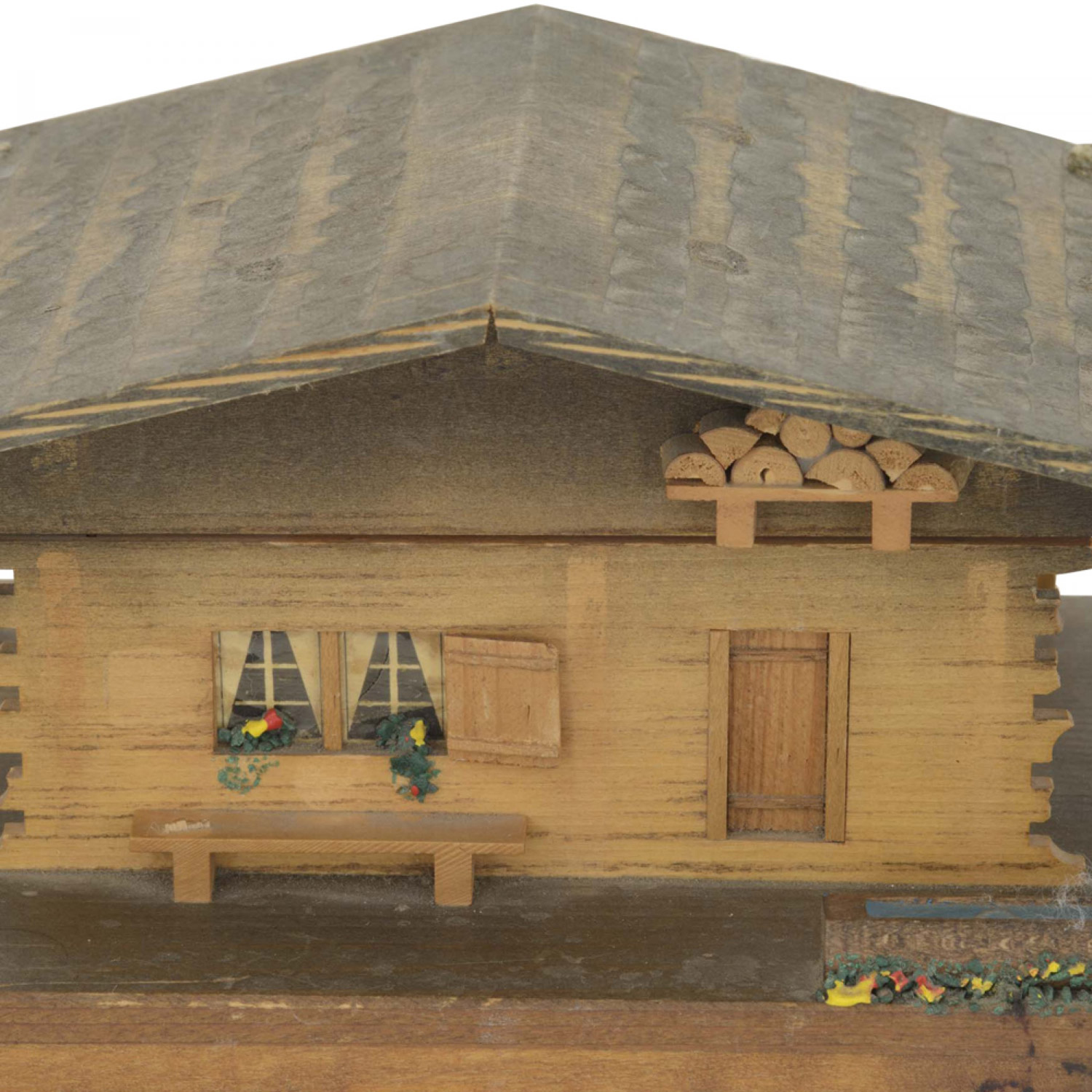 Rustic Continental (19/20th Century) house-shaped wood music box on a base
