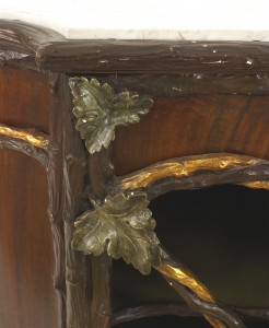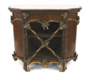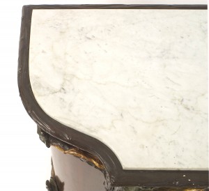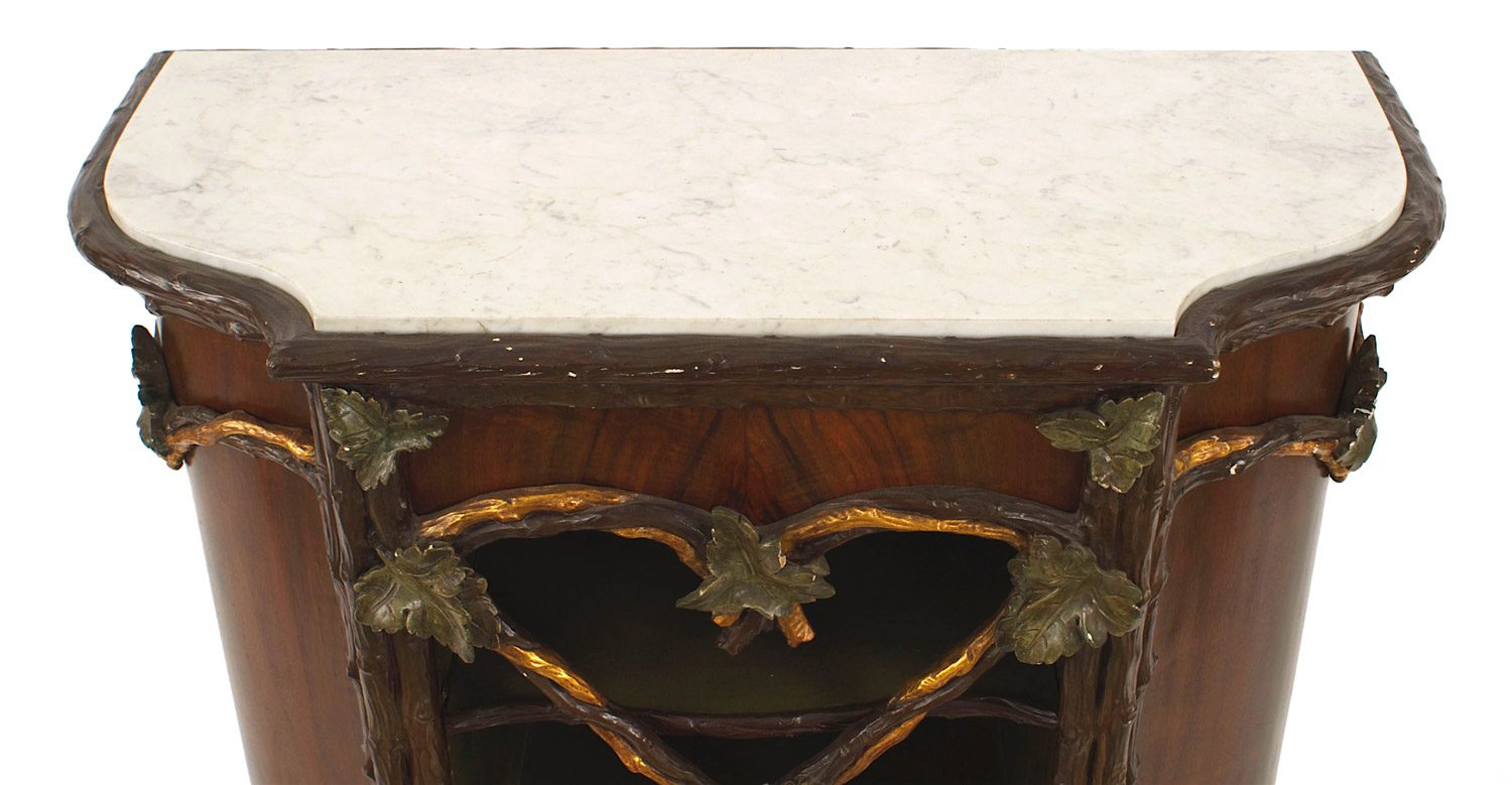 Style: Rustic Materials & Techniques: Marble, painted, carved Category: Tables Condition: Surface wear on base