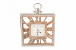 Rustic Continental Style Wooden Square Wall or Table Clock with Glass Inset