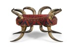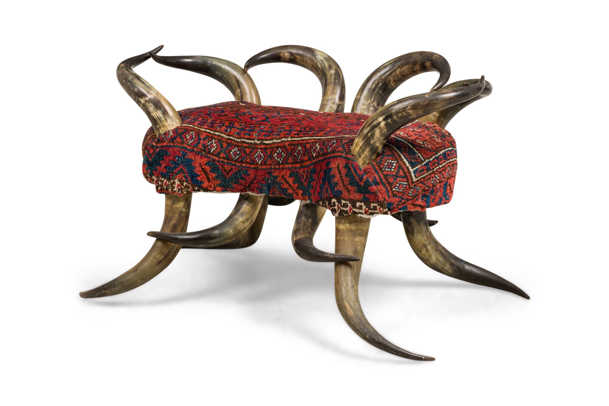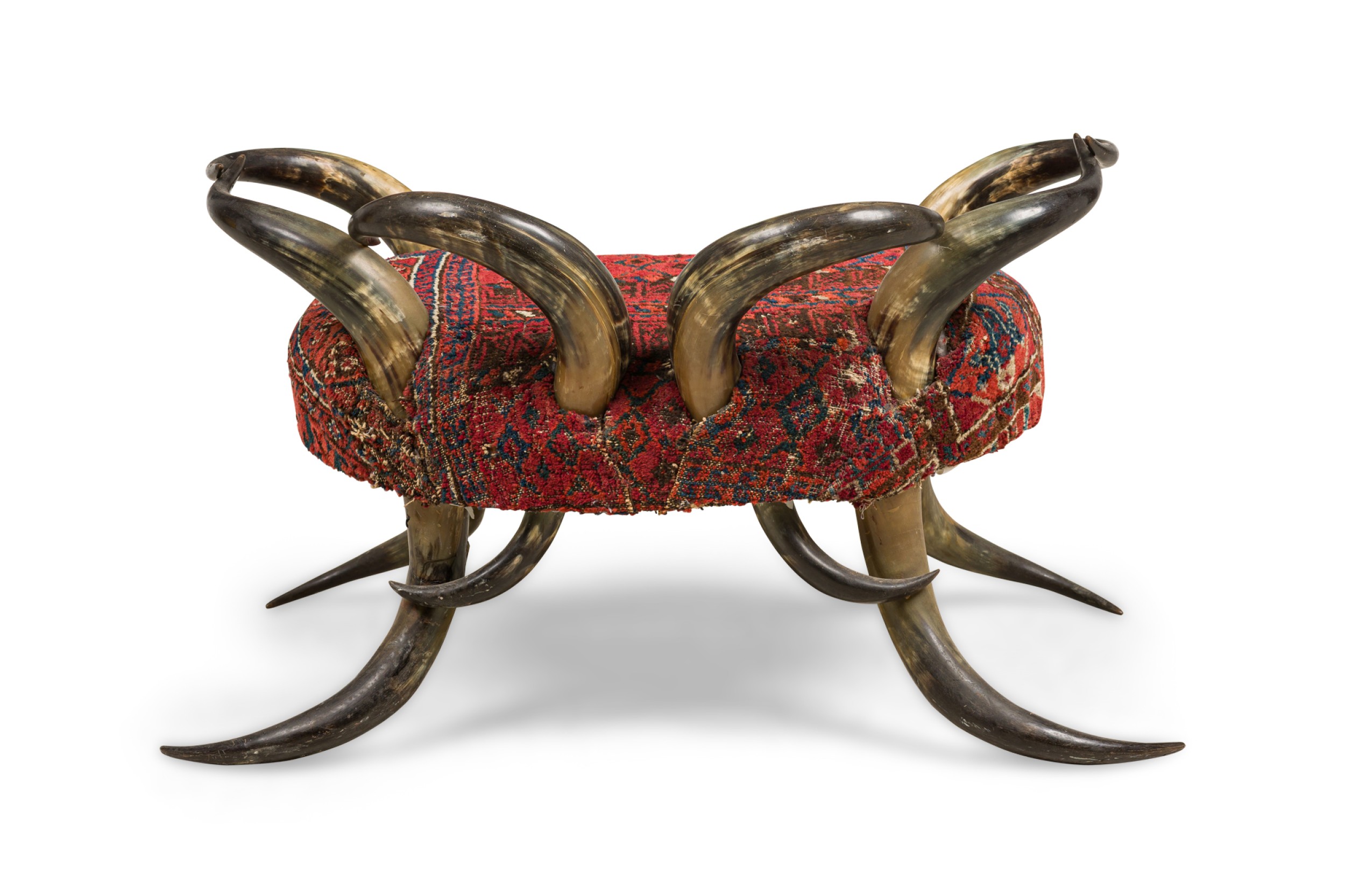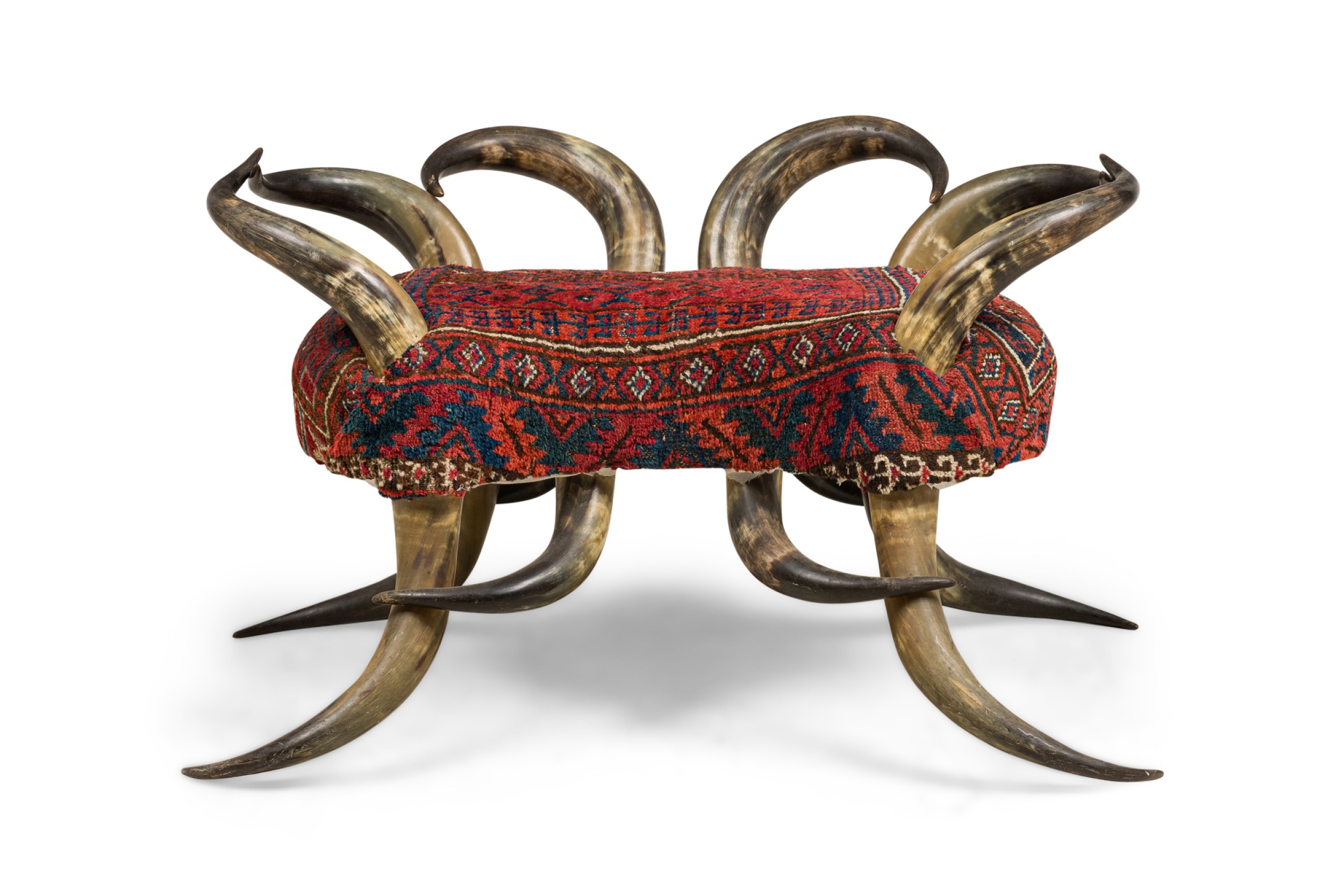 American Rustic Horn and Kilim Upholstered Chair / Bench