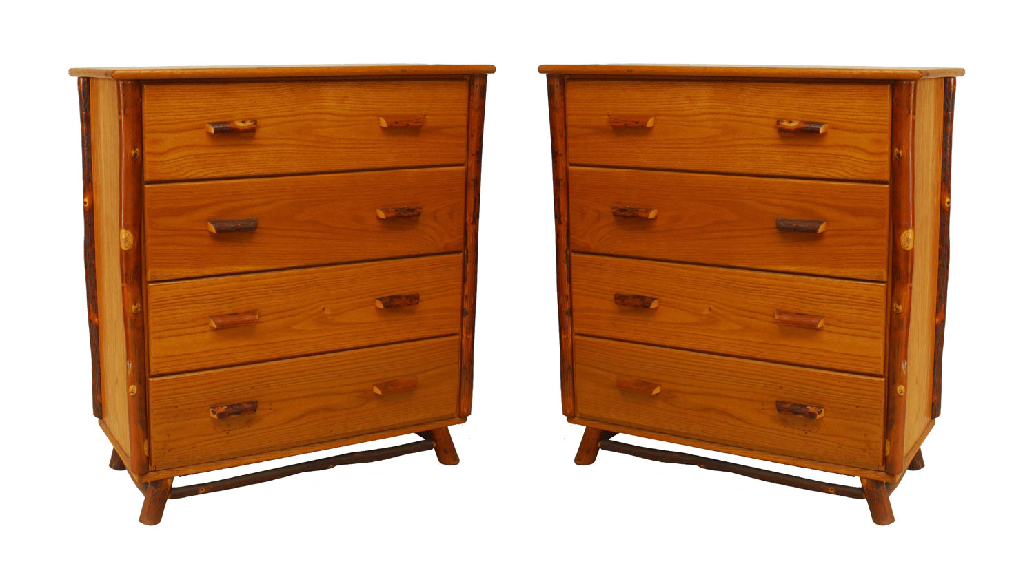 PAIR of Rustic Old Hickory oak chests of 4 drawers with hickory trim. (Signed INDIANA WILLOW HICKORY CO.) (PRICED AS PAIR).