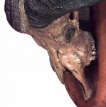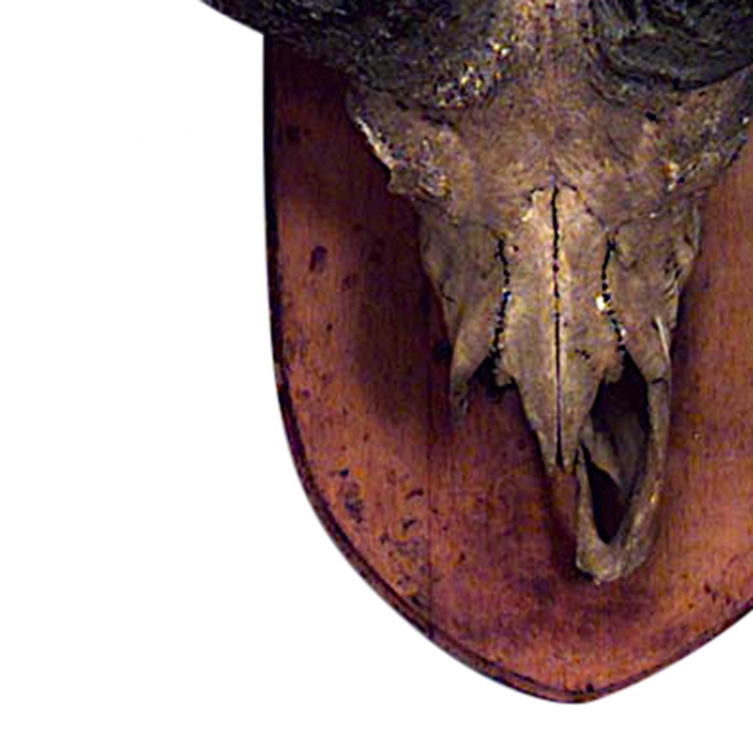 African style taxidermy large water buffalo skull mounted on oak shield shaped wall plaque (19/20th Cent.)