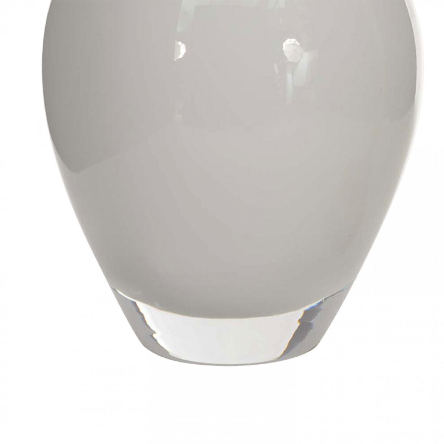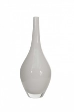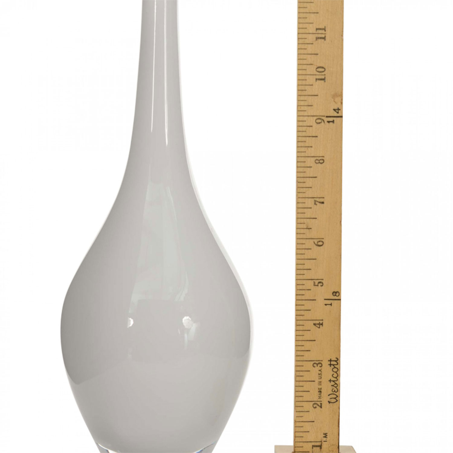Scandinavian Mid-Century ovoid shaped base white case glass bud vase with a long, tapered neck
