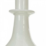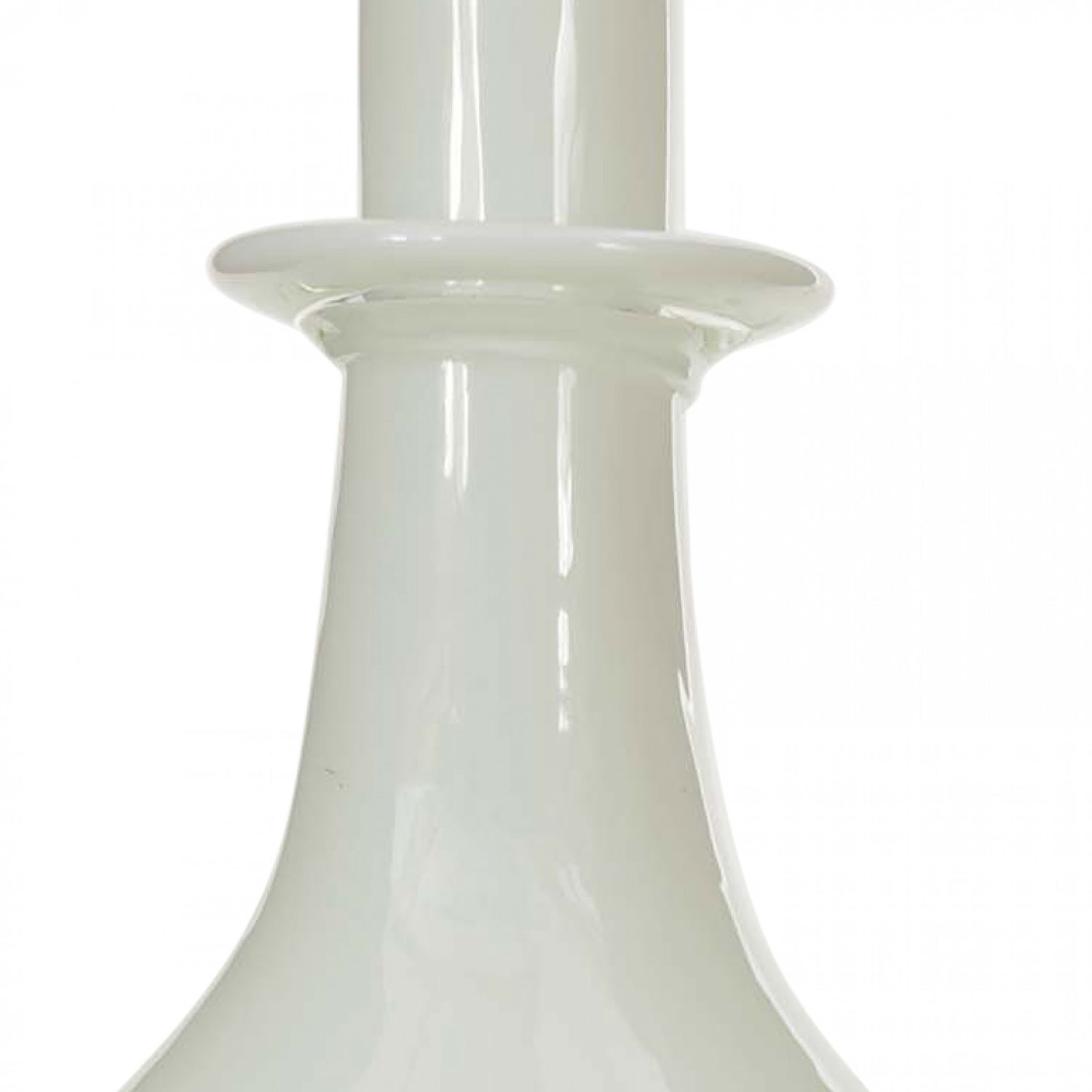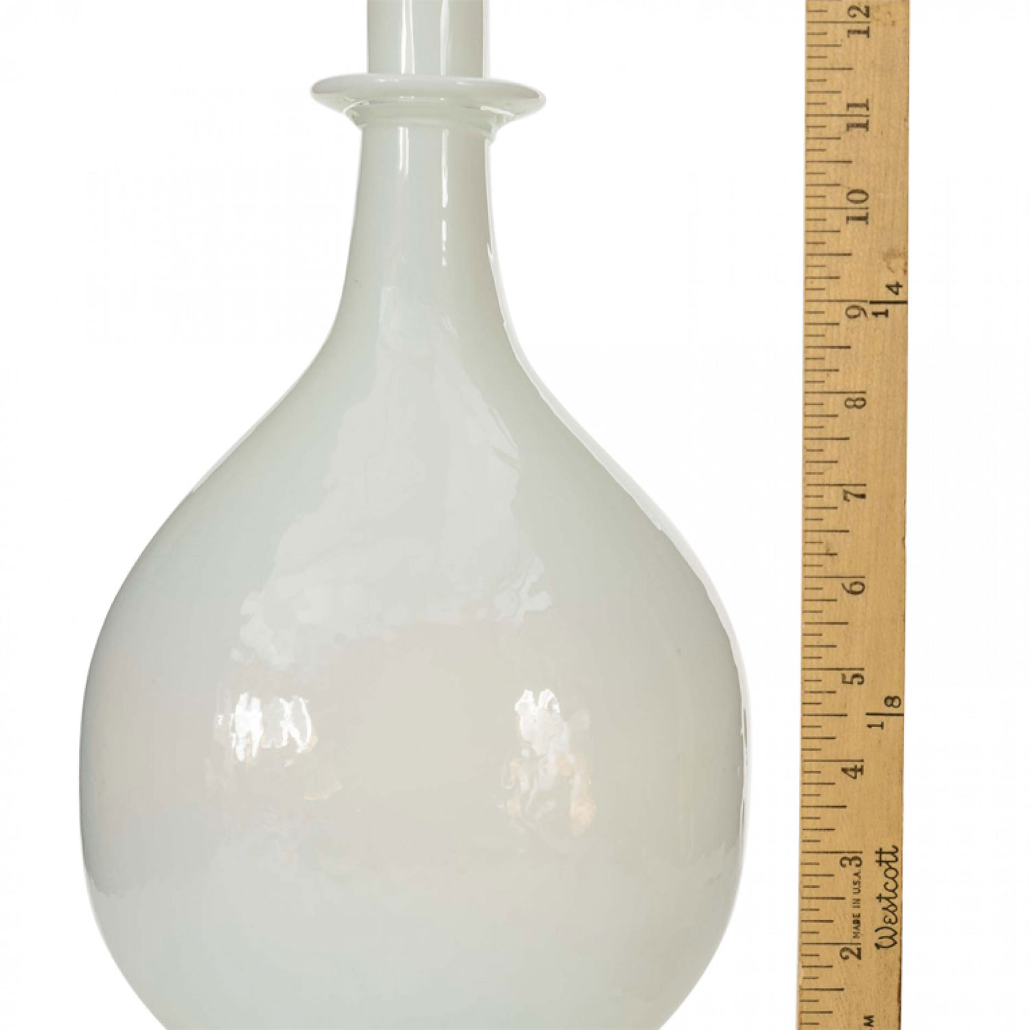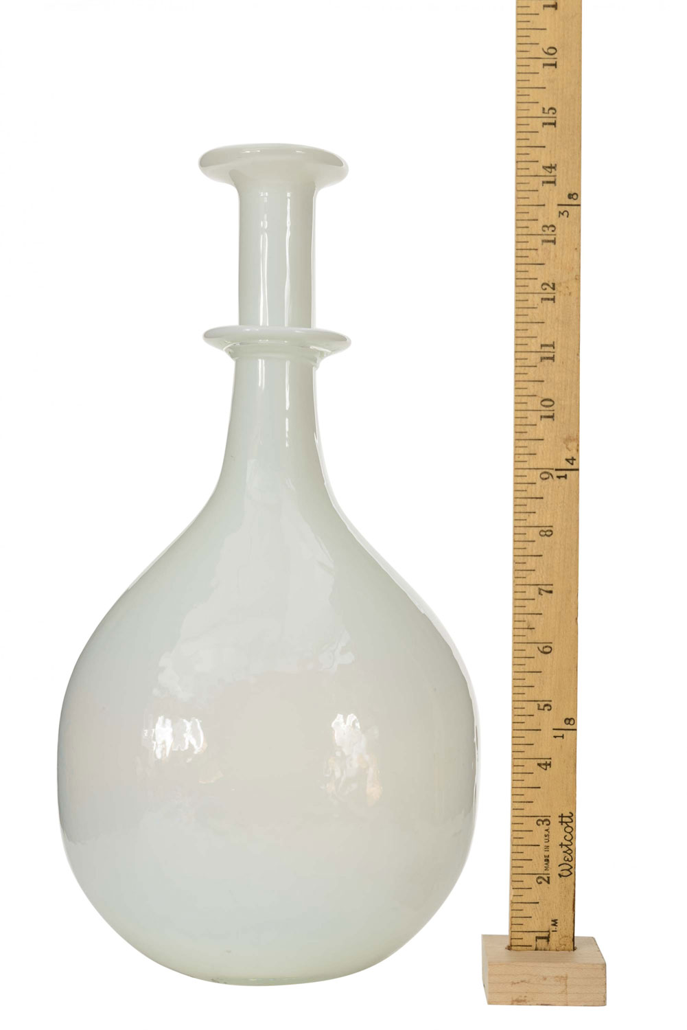 Scandinavian Mid-Century bulbous shaped white case glass vase with a cylindrical neck, a wide flared rim, and a raised ring around the neck.