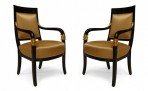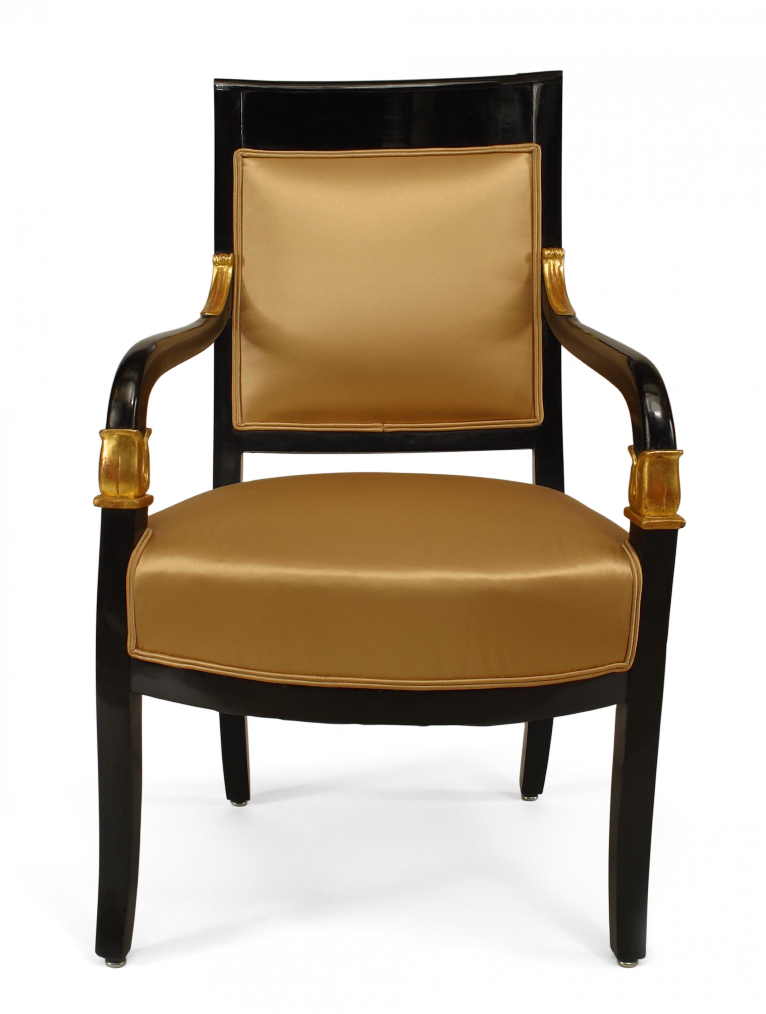 PAIR of Continental Austrian (1st half 19th Century) ebonized open Armchairs with gilded palmettes and trim with upholstered seat and back.