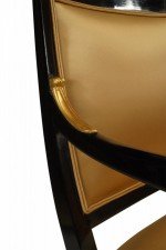 Style: Continental Materials & Techniques: Ebonized, gilded Category: Seating Condition: One chair has a large stain on the seat. The other chair has smaller stains. Good; Wear consistent with age and use