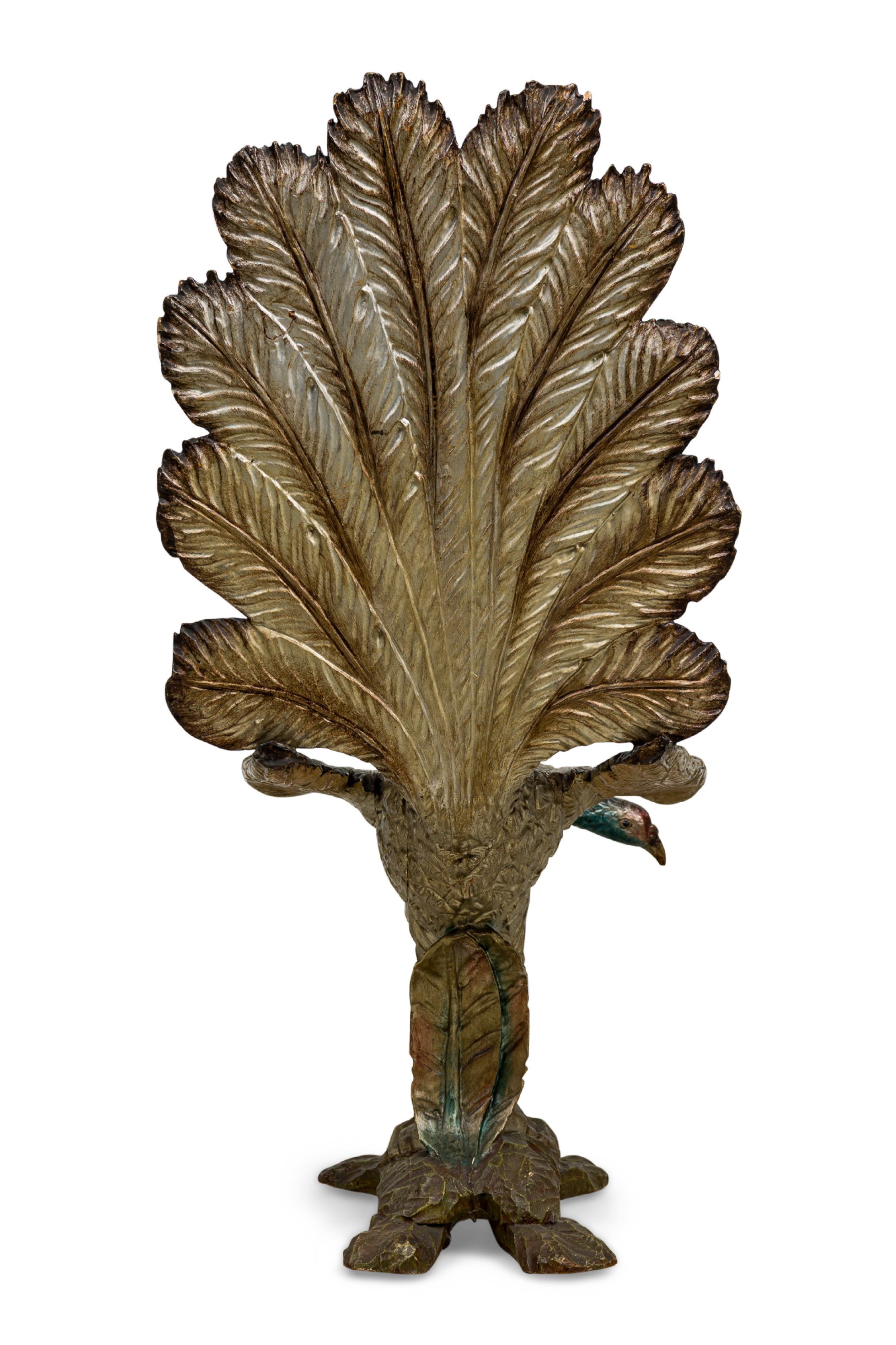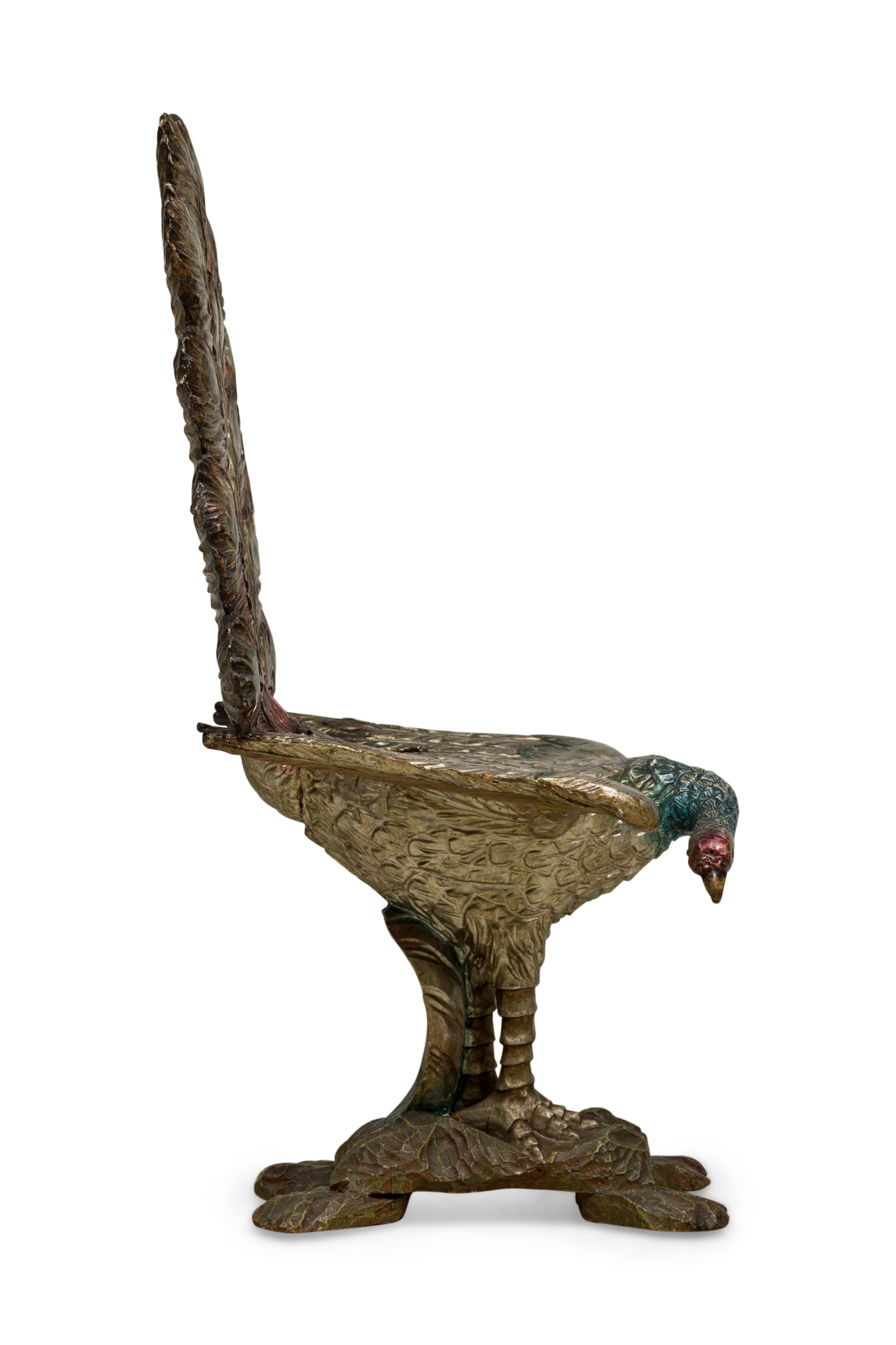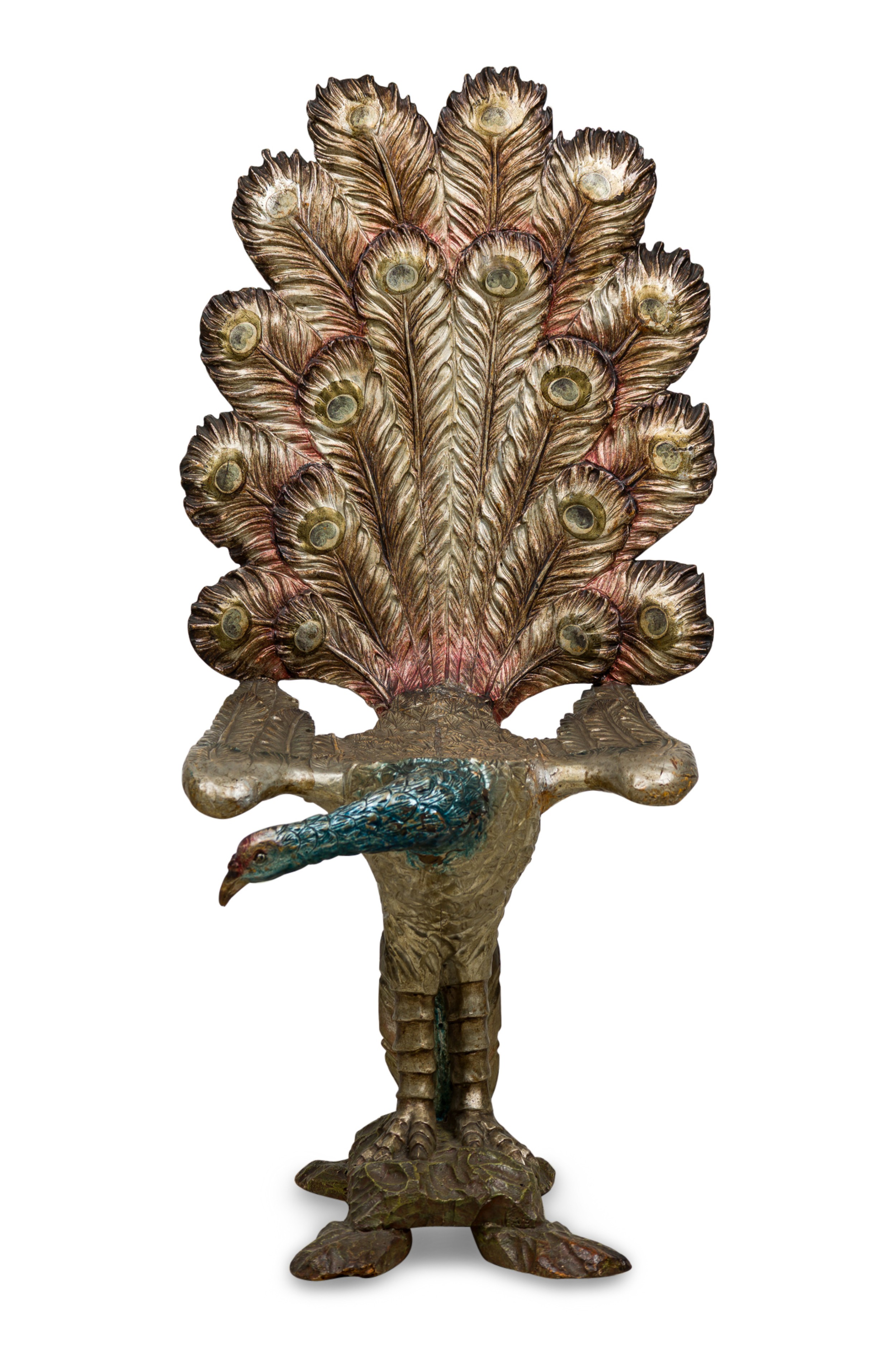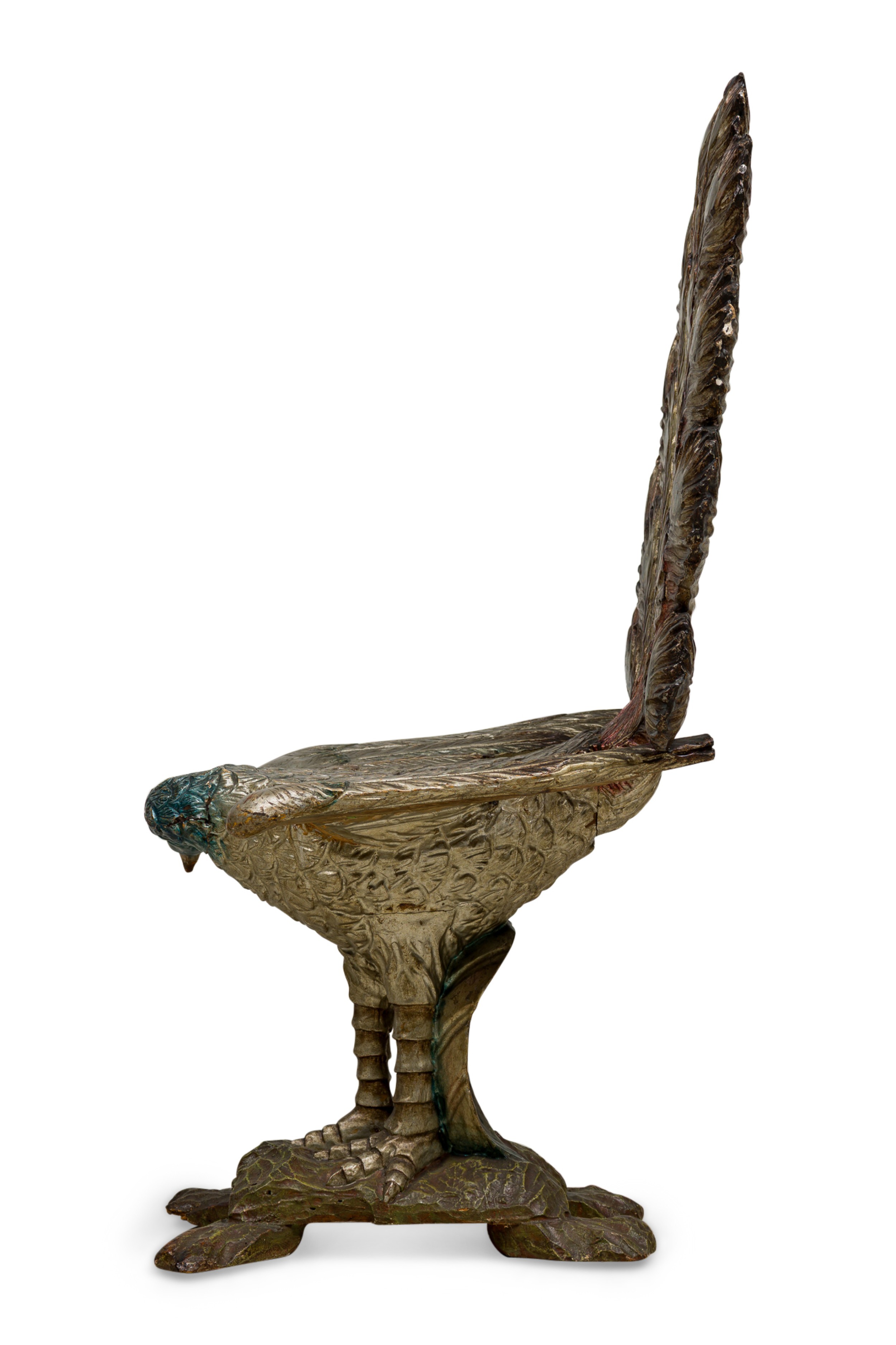 Italian Ventetian style (19th Cent) carved peacock silver and polychromed side chair