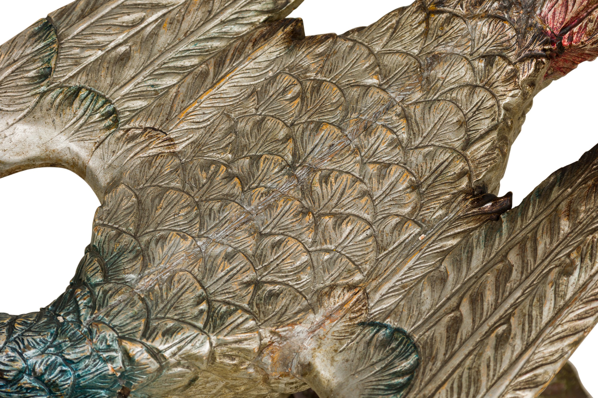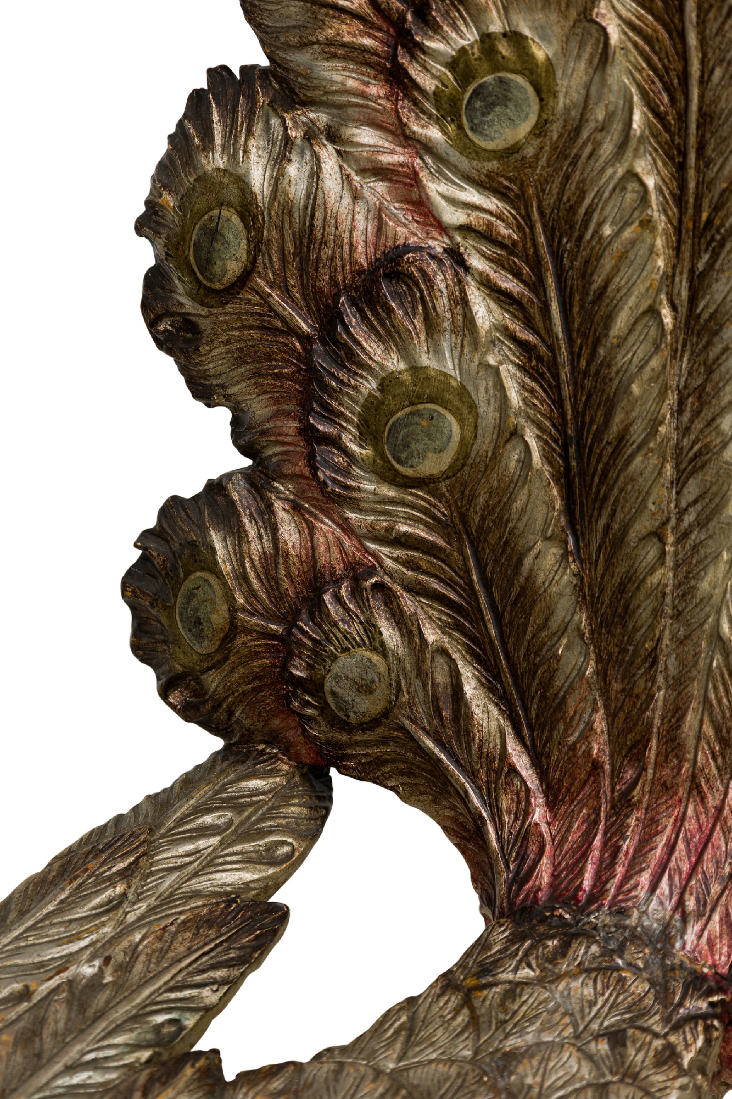 Italian Ventetian style (19th Cent) carved peacock silver and polychromed side chair.