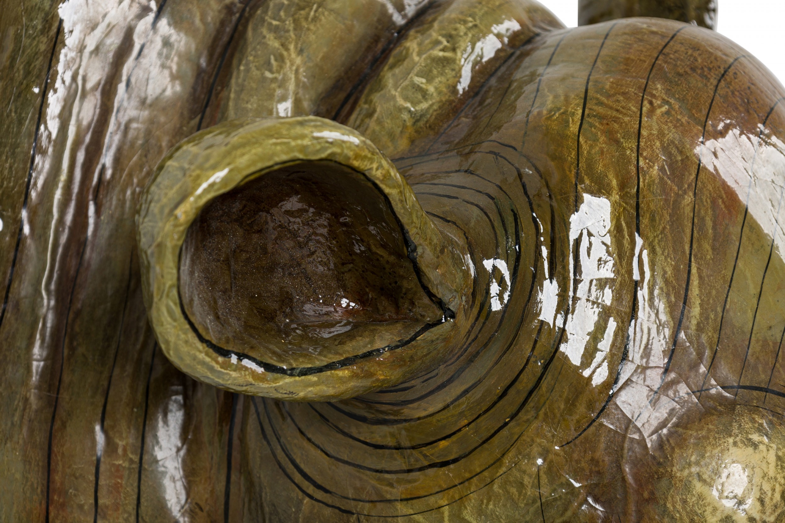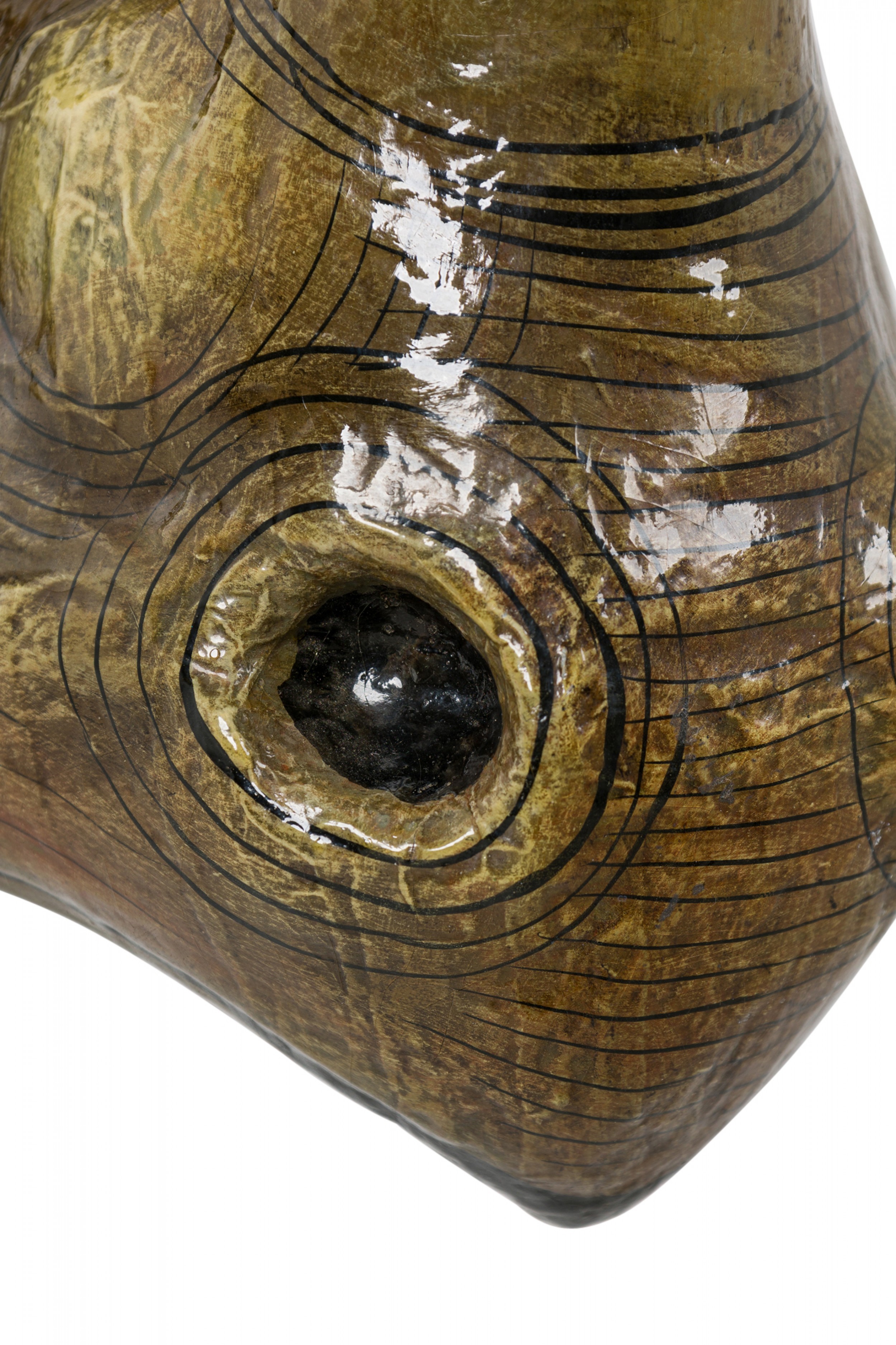 Style: Mid-Century Materials & Techniques: Lacquered, painted, paper Category: Cleared Sculpture Condition: Cracking to lacquered finish. Good; Wear consistent with age and use