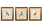 SET of 3 English Victorian prints of various colored birds in an oak and gold trim frame (PRICED AS SET).