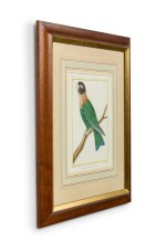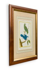 SET of 3 English Victorian prints of various colored birds in an oak and gold trim frame (PRICED AS SET)