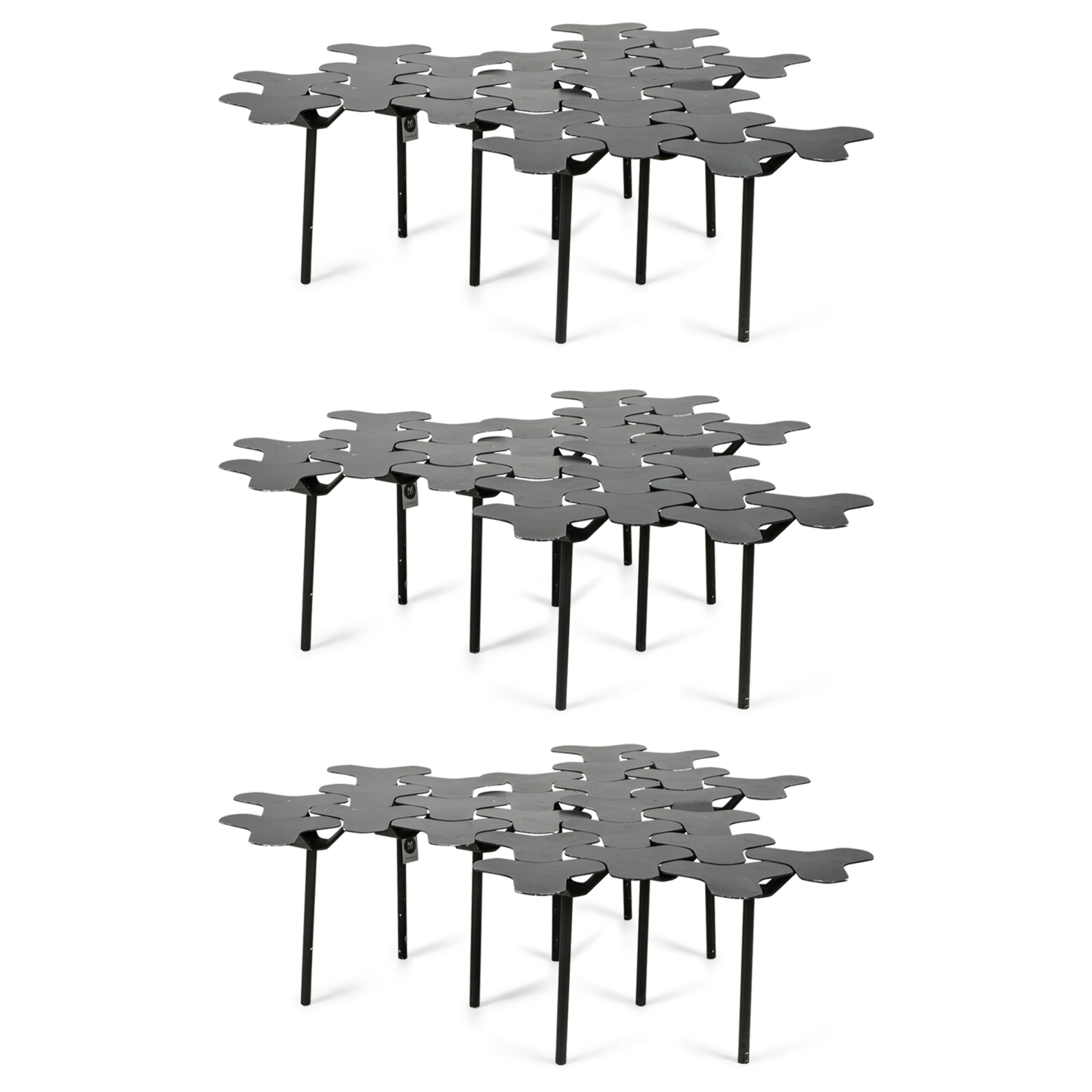 SET of 3 "Nanook" Contemporary Italian black painted die-cut steel low side tables, which interlock modularly to create a larger coffee table (designed by PHILLIPE BESTENHEIDER for MOROSO) (PRICED AS SET)