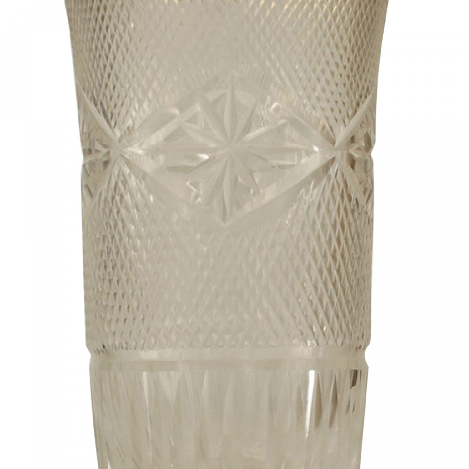 Set of 5 cut crystal champagne glasses with diamond design on stem and gold trim. (PRICED AS SET)