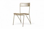 SET of 6 Mid-Century Italian ribbon dining chairs with gently sloped, mesh metal seats and demilune backs in a pale shade of gold. (MAURIZIO TEMPESTINI FOR SALTERINI)(PRICED AS SET)(Other examples in different color: DUF0814)