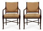 Set of 6 Regency Style Mahogany Arm Chairs with Yellow Damask Upholstery
