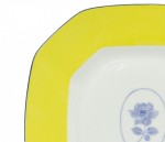 Set of 9 French Victorian Limoge porcelain 8 sided plates with yellow border and blue floral center (PRICED AS SET)