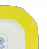 Set of 9 French Victorian Limoge porcelain 8 sided plates with yellow border and blue floral center (PRICED AS SET).