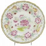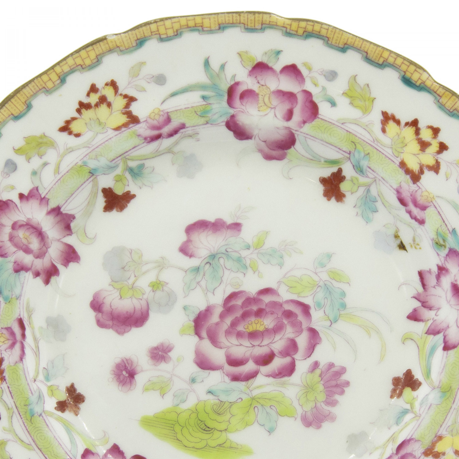 Set of 4 English Victorian white porcelain plates with red floral decoration and beige edge (Royal Doulton).