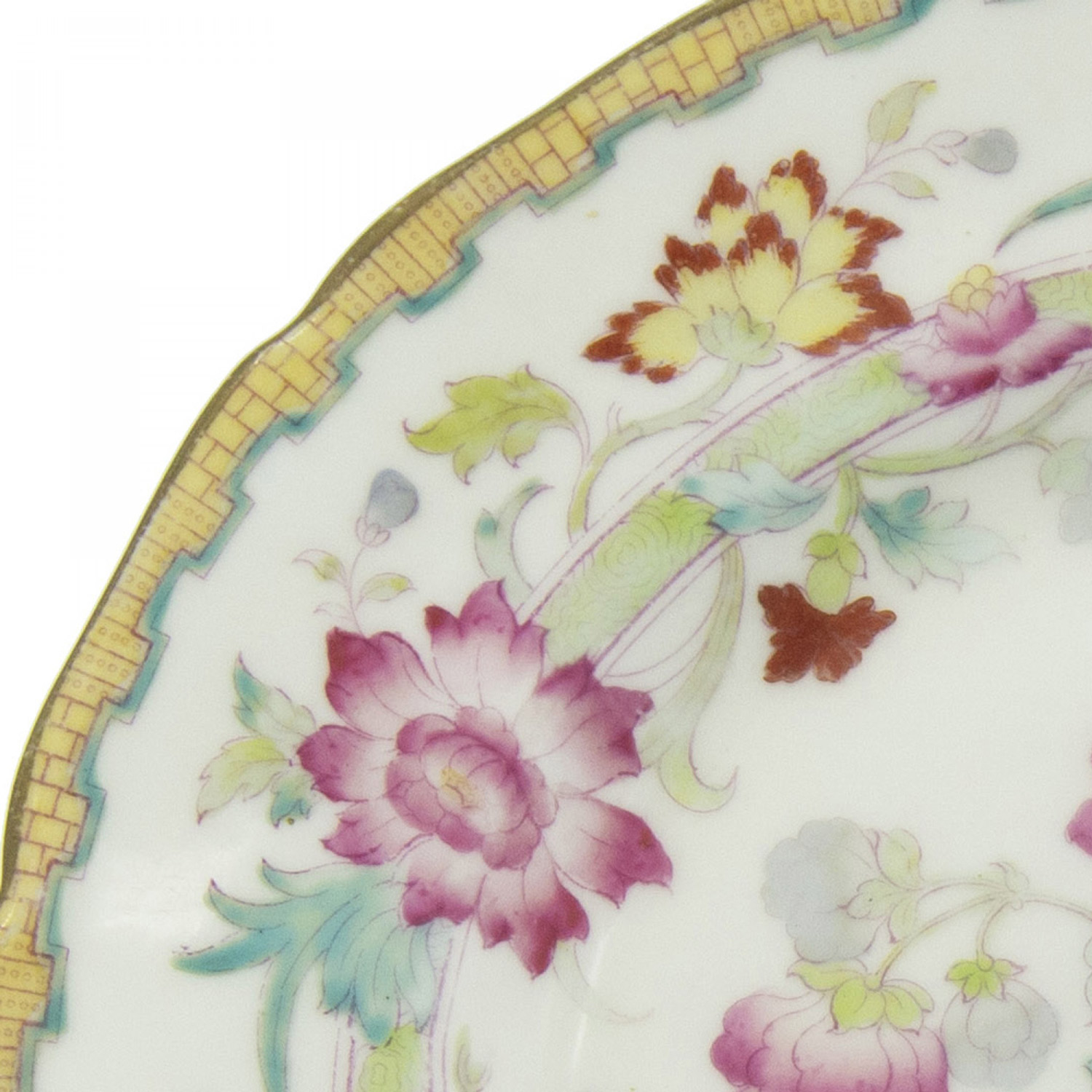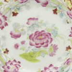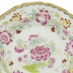 Set of 4 English Victorian white porcelain plates with red floral decoration and beige edge (Royal Doulton)