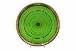 Set of 8 green crystal dinner plates with floral enamel border and gold trim..