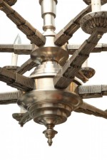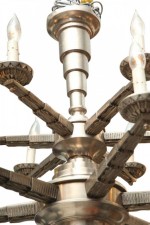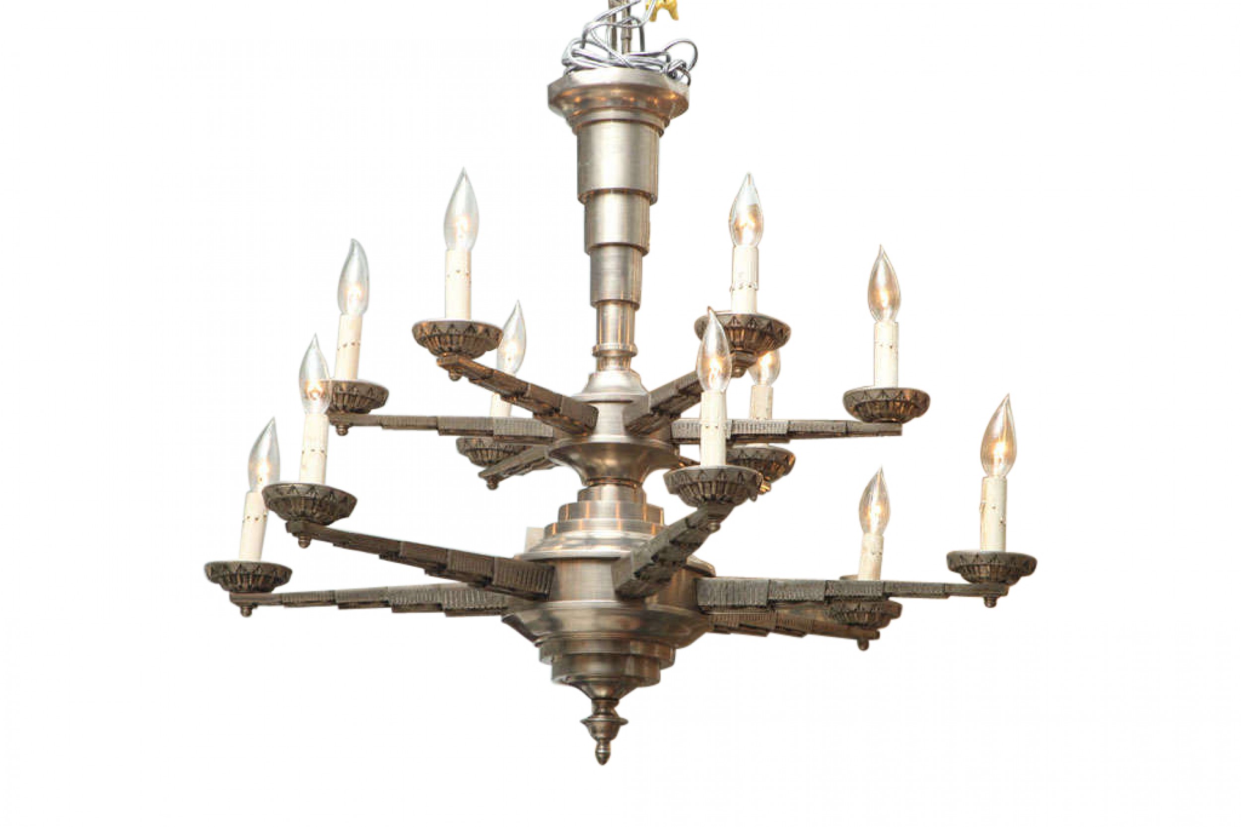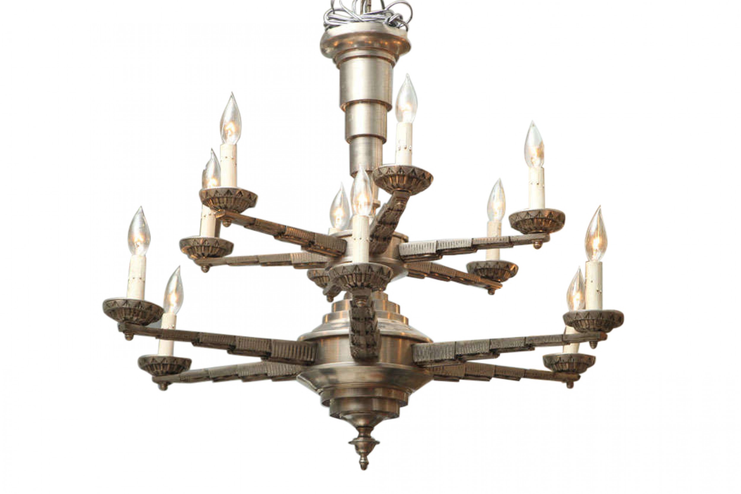 Superb Art Deco Nickel and Steel Twelve-Light Chandelier, 1930s.