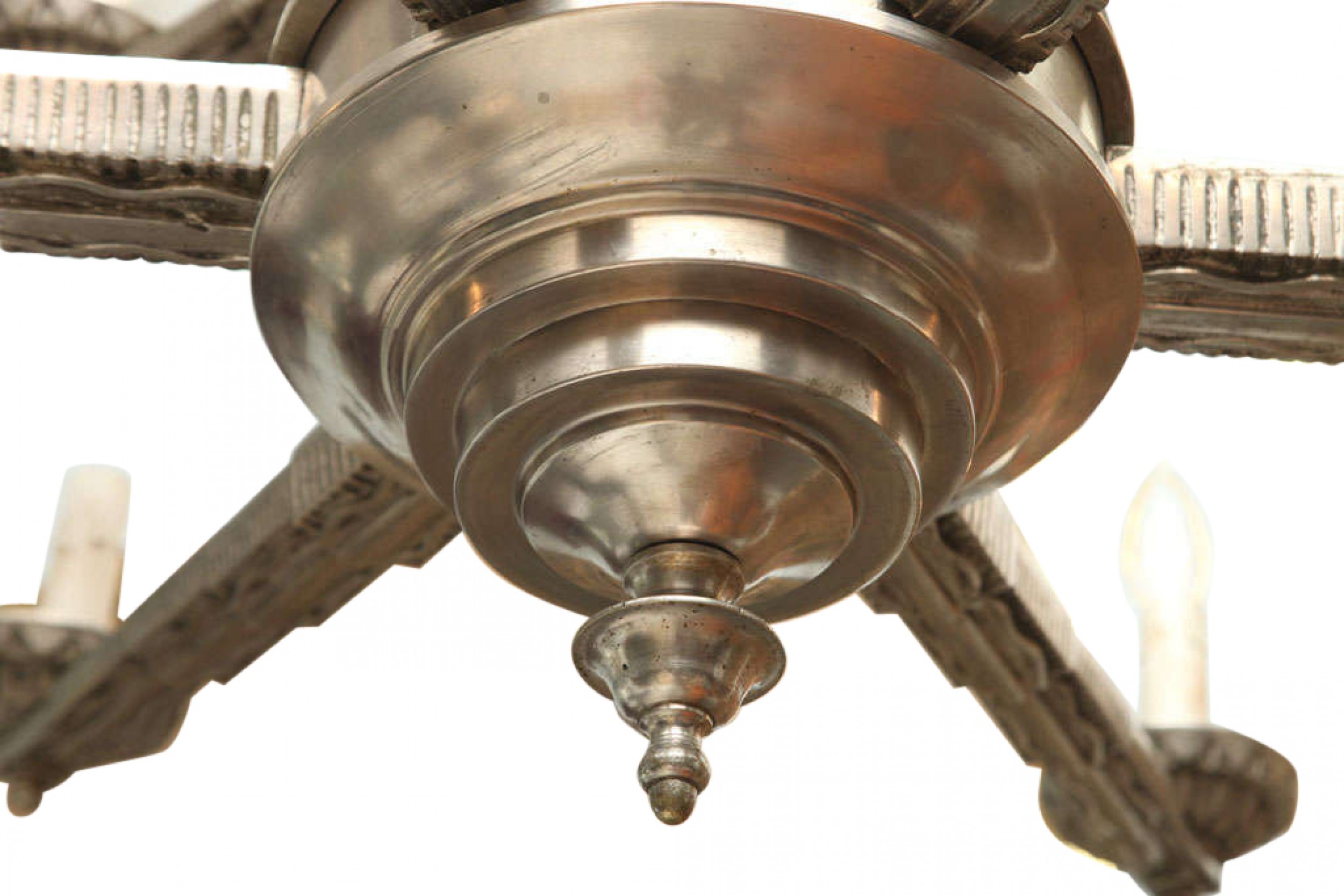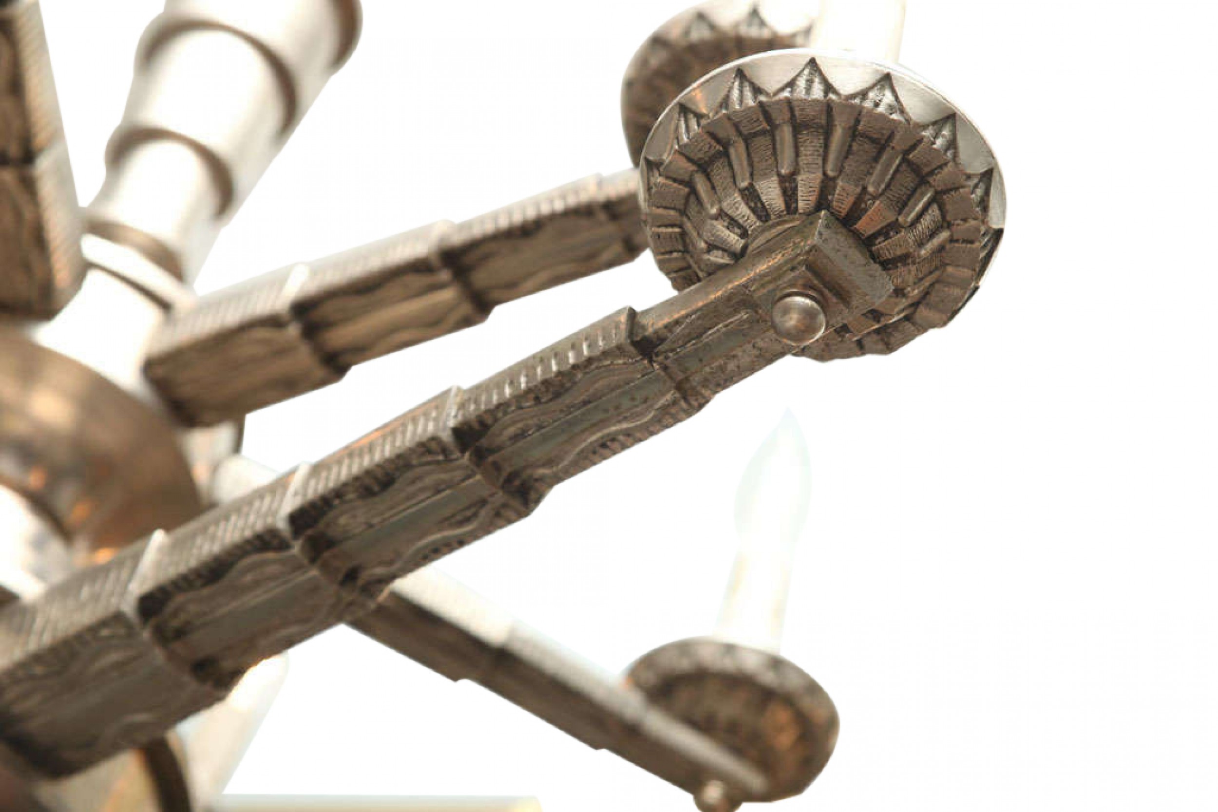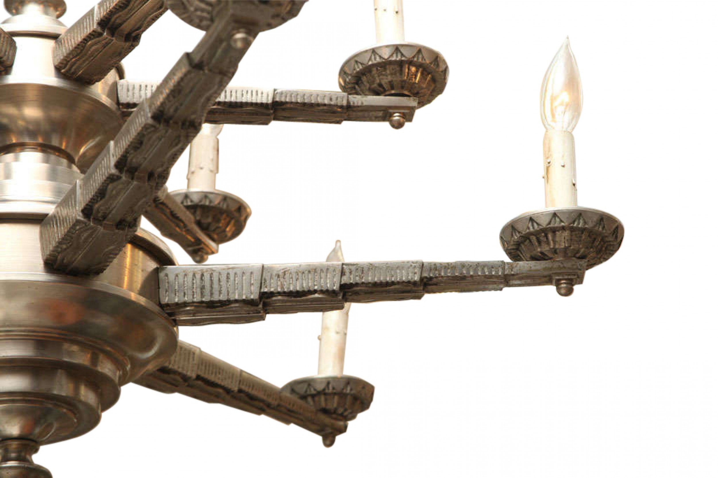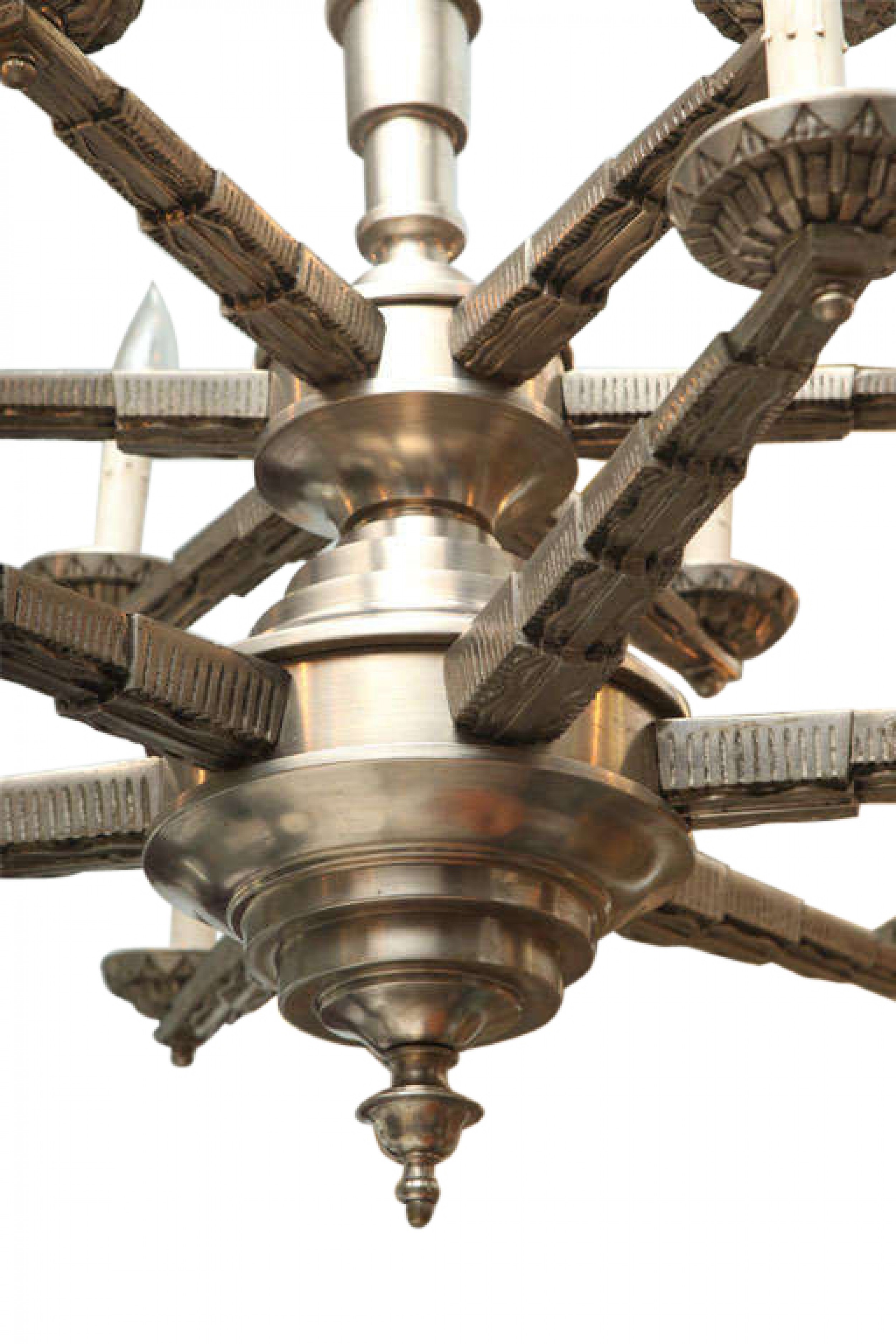 Superb Art Deco Nickel and Steel Twelve-Light Chandelier, 1930s