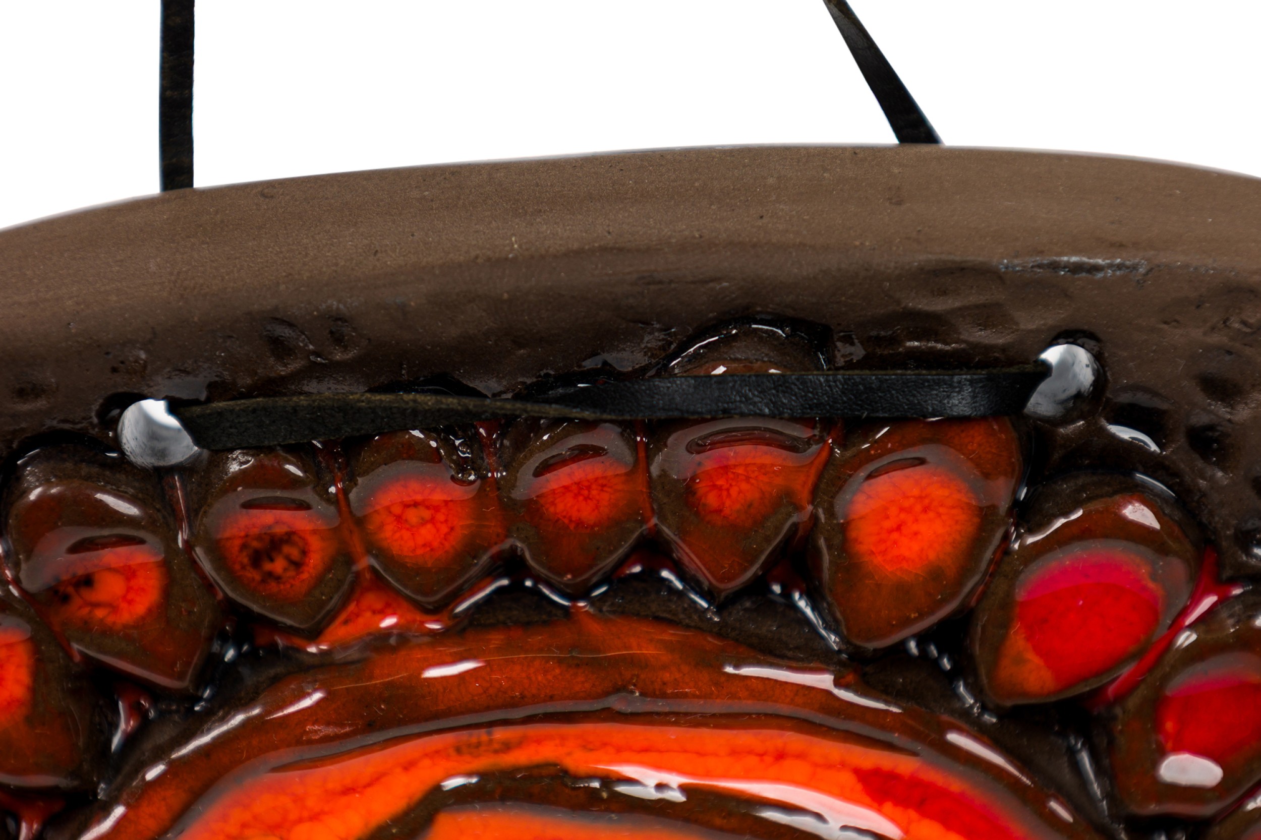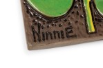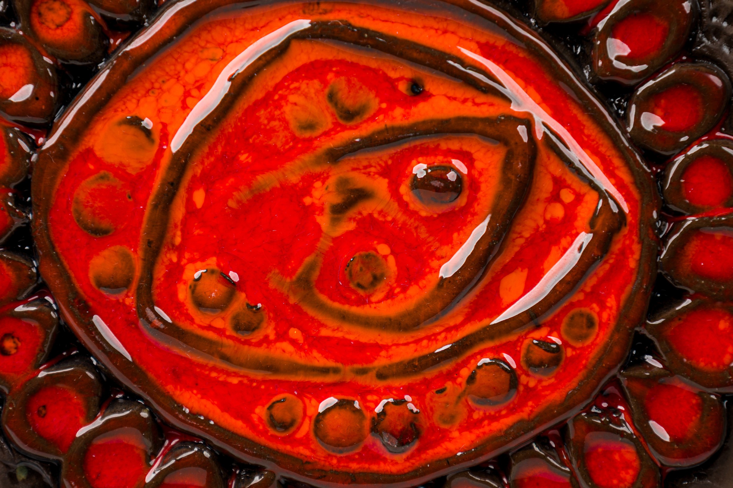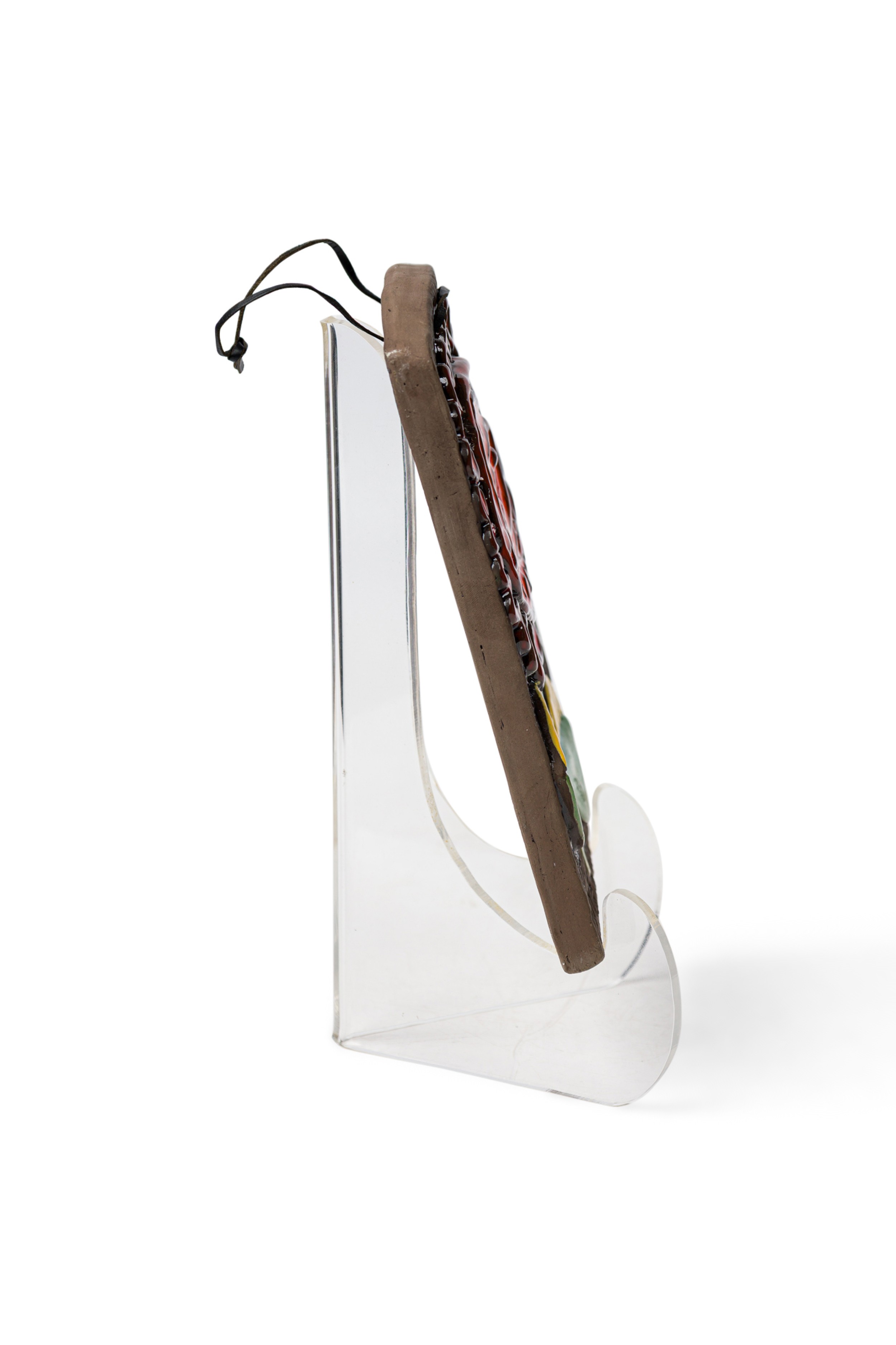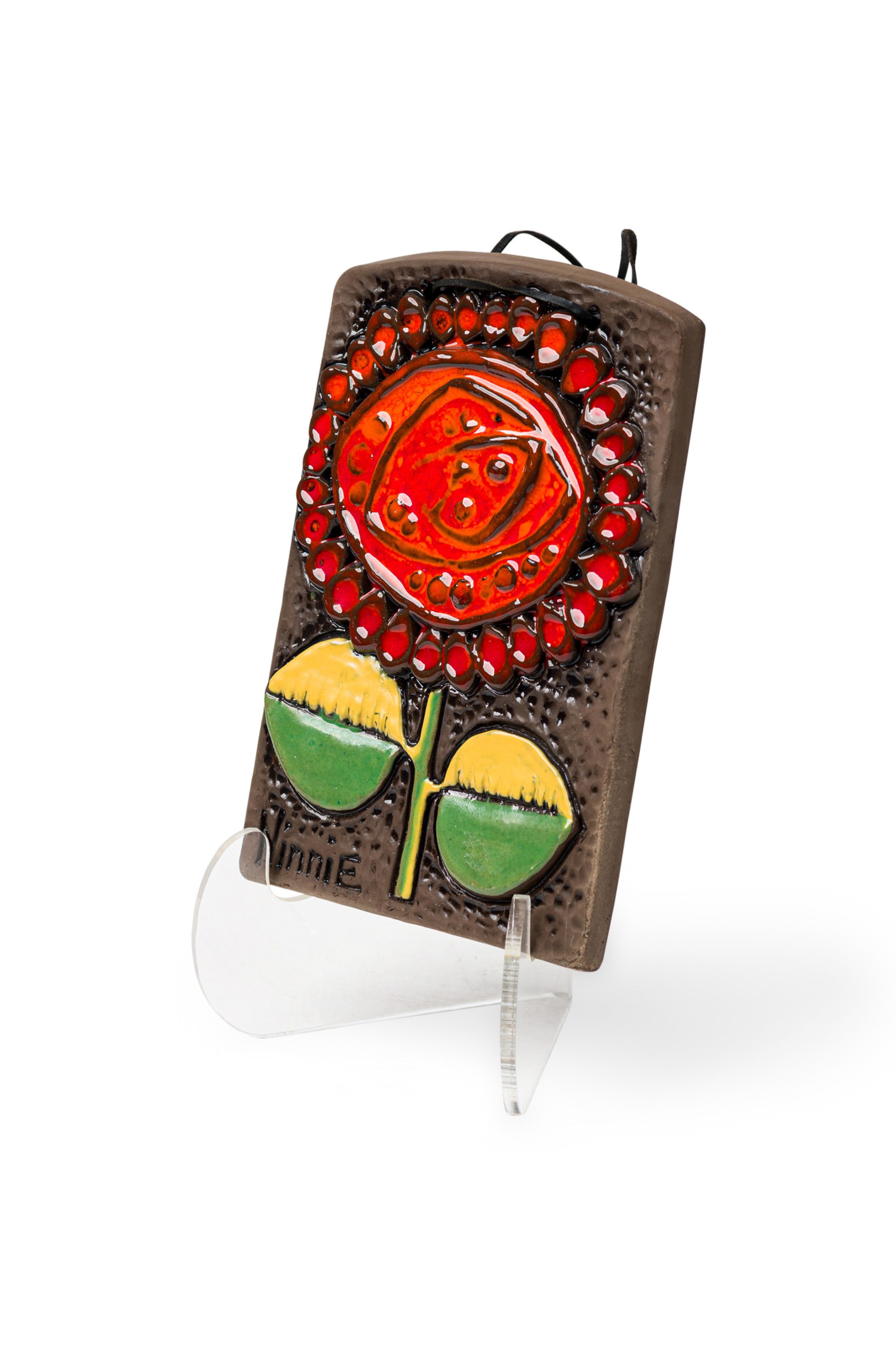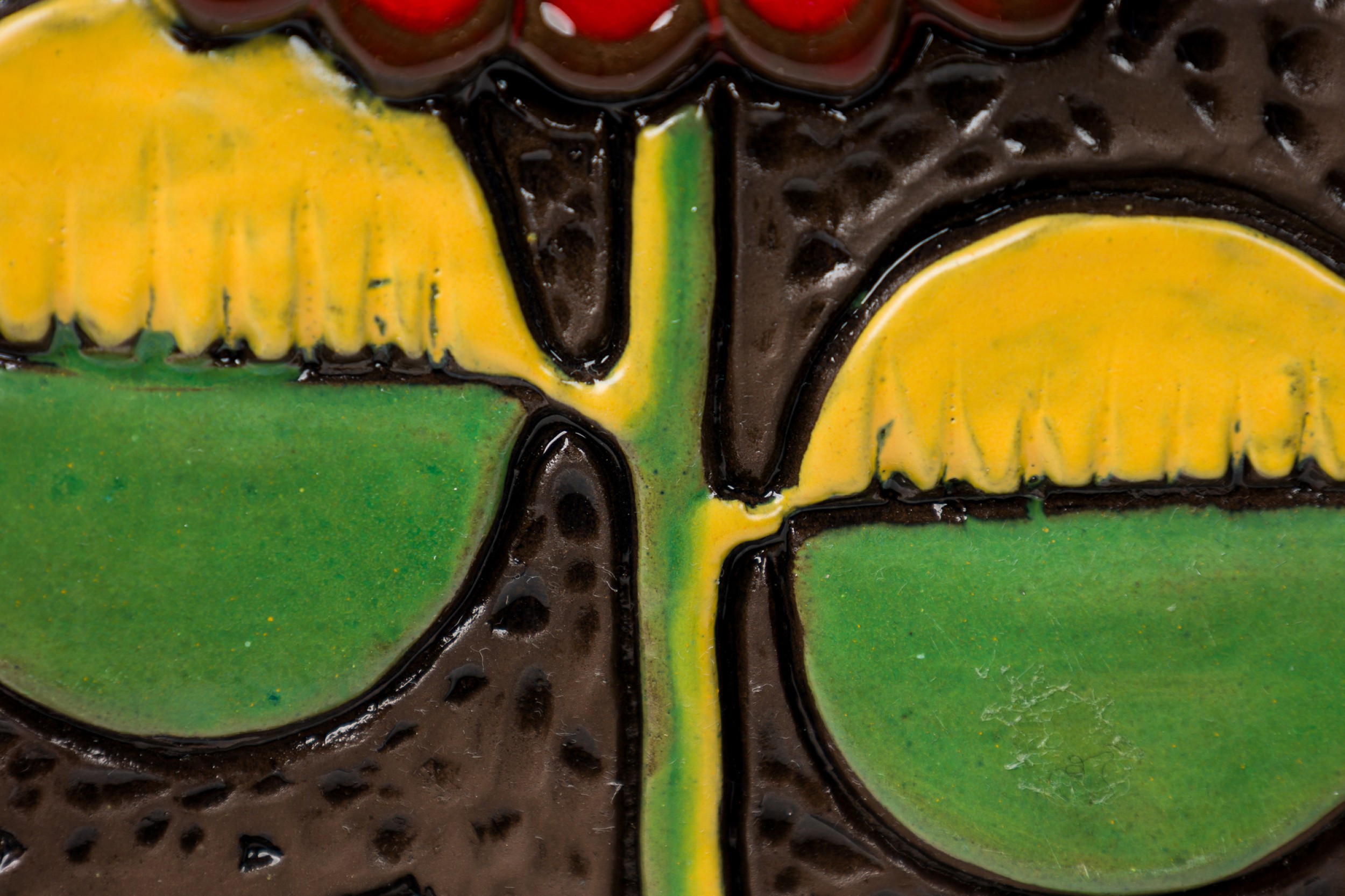 Swedish Mid-Century wall plaque with abstract of 2 yellow and green centering a red floral relief motifs (NINNIE FORSGREN, BROMMA KERAMIK)