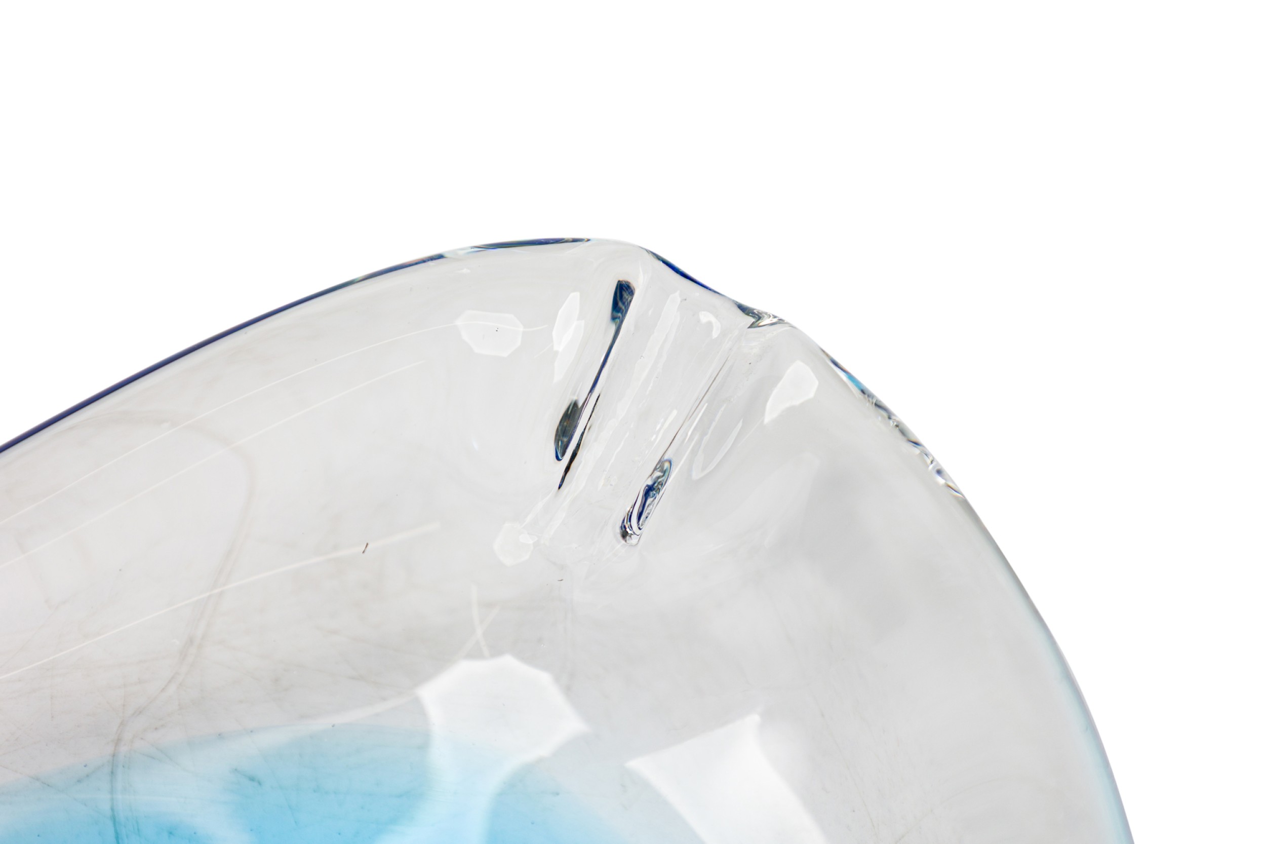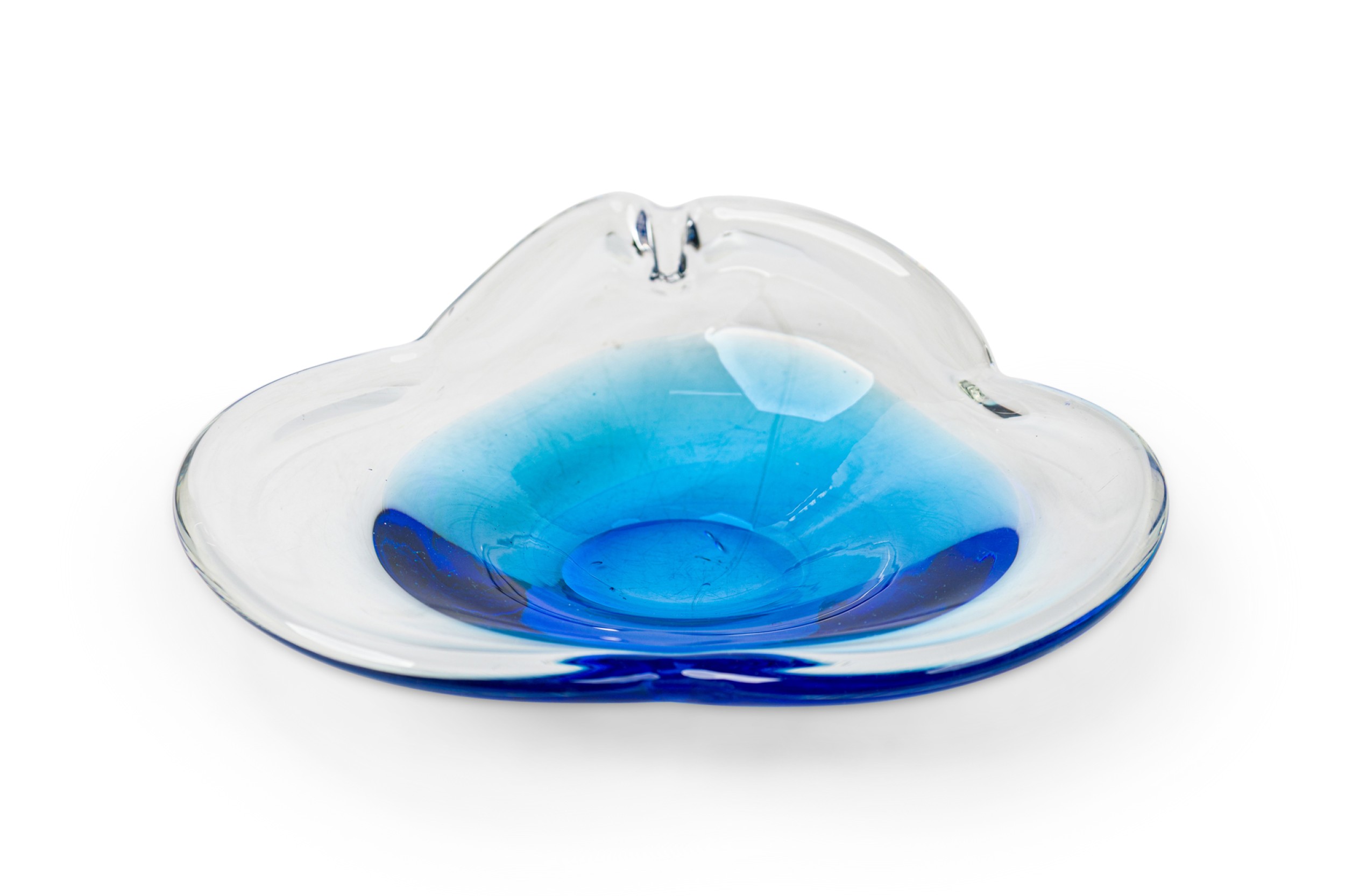 Swedish Mid-Century Blue Floral Art Glass Ashtray