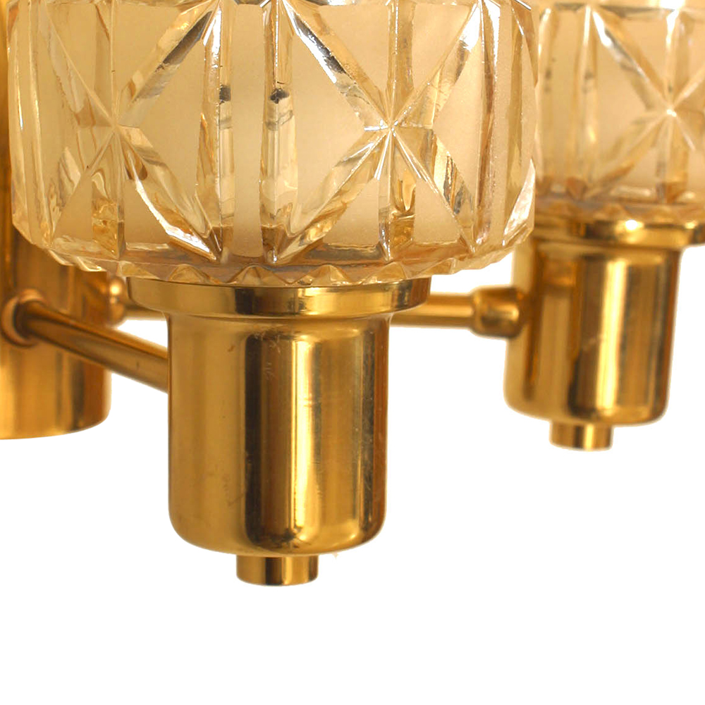 3 Swedish Mid-Century (1950s) brass wall sconces with two arms with two cut glass shades on either side. (attributed to HANS-AGNE JAKOBSSON) (PRICED EACH)