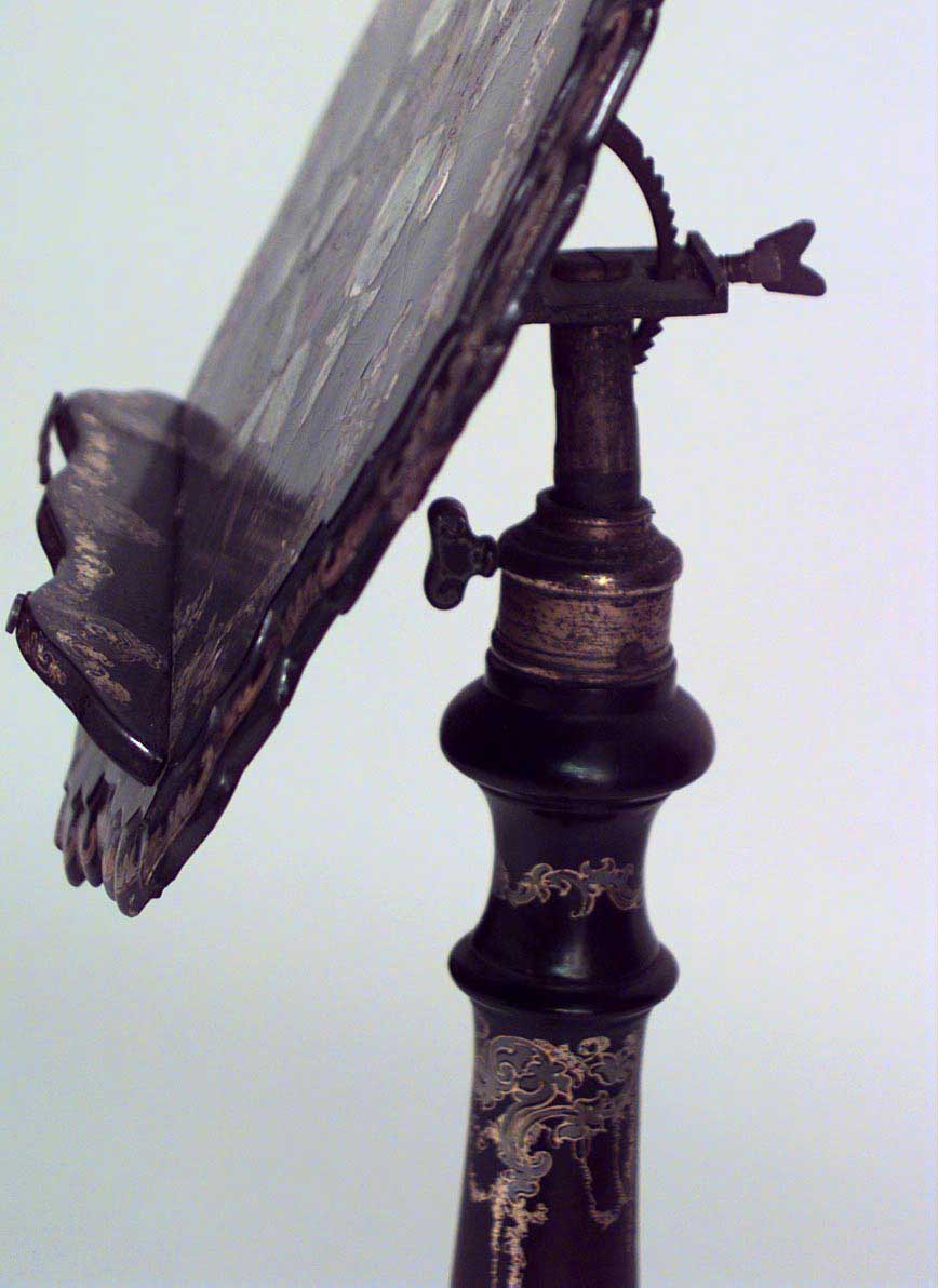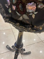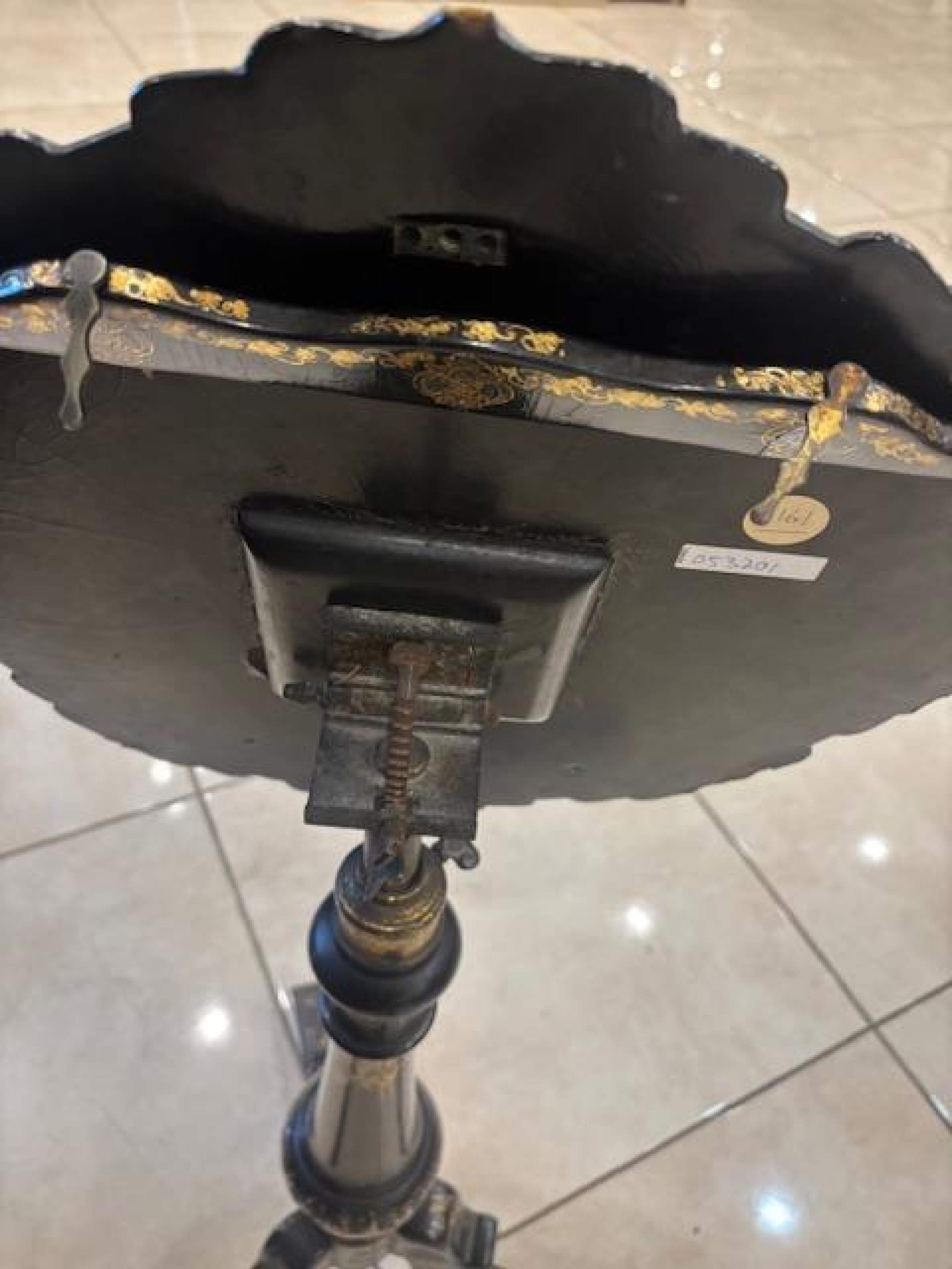 English Victorian Papier-maché pearl-inlaid black-lacquered round adjustable music-stand/tilt-top end table