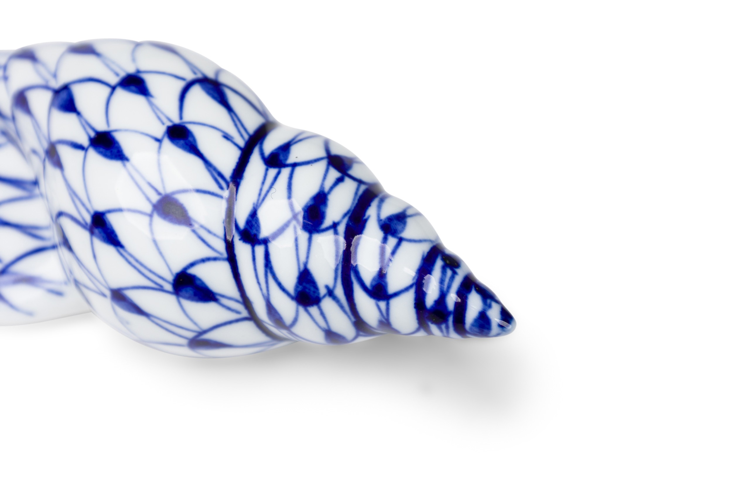 Japanese Vintage fishnet patterned blue and white porcelain shell form figurine (ANDREA BY SADEK)