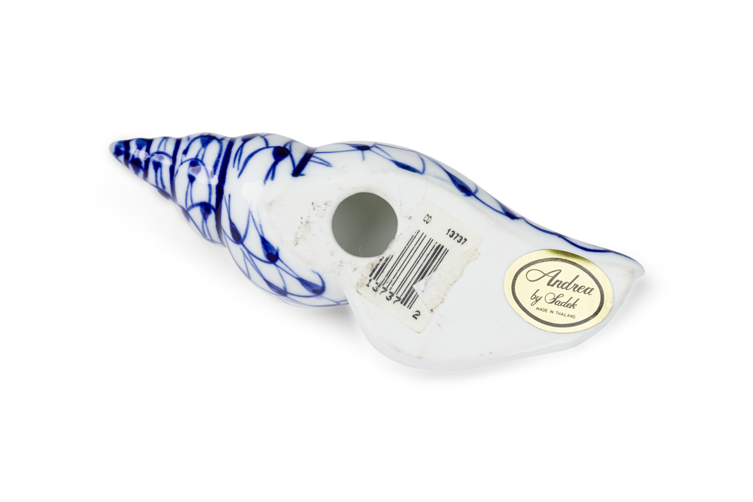 Japanese Vintage fishnet patterned blue and white porcelain shell form figurine (ANDREA BY SADEK).