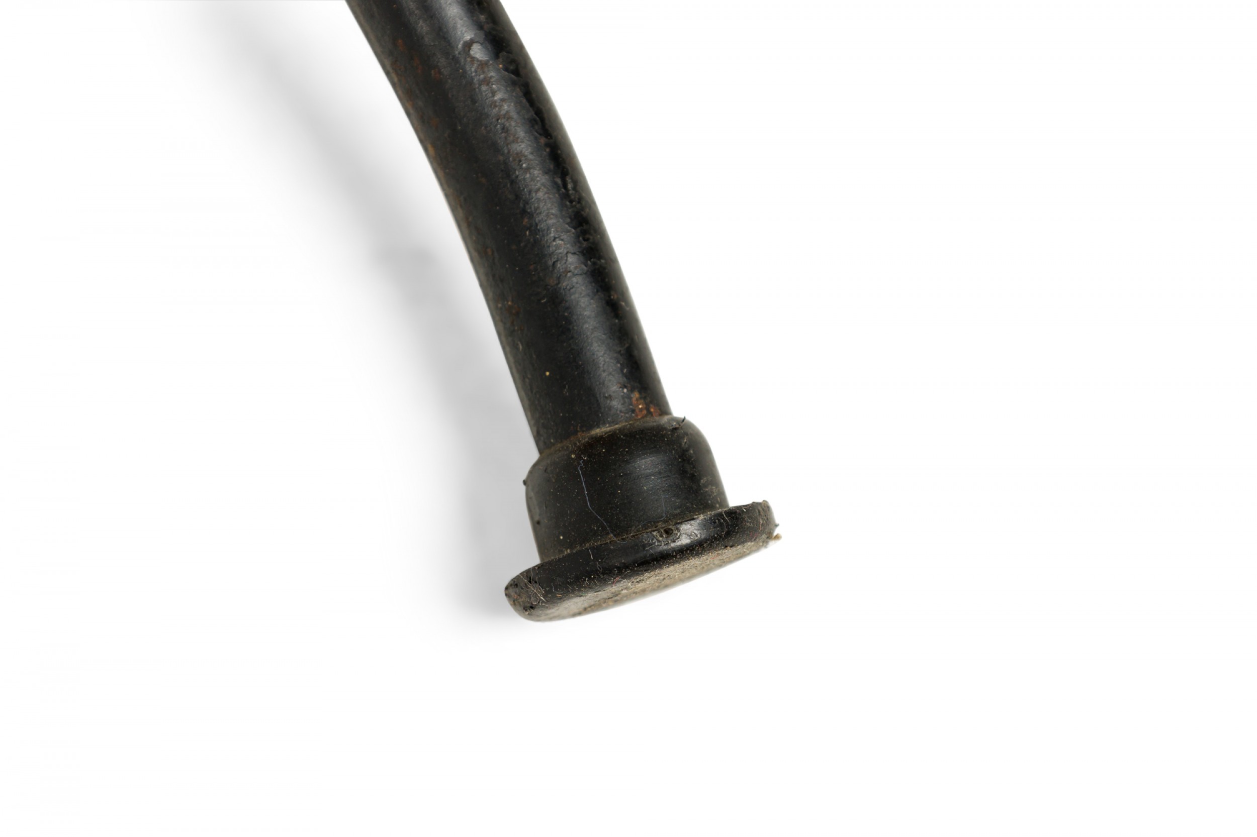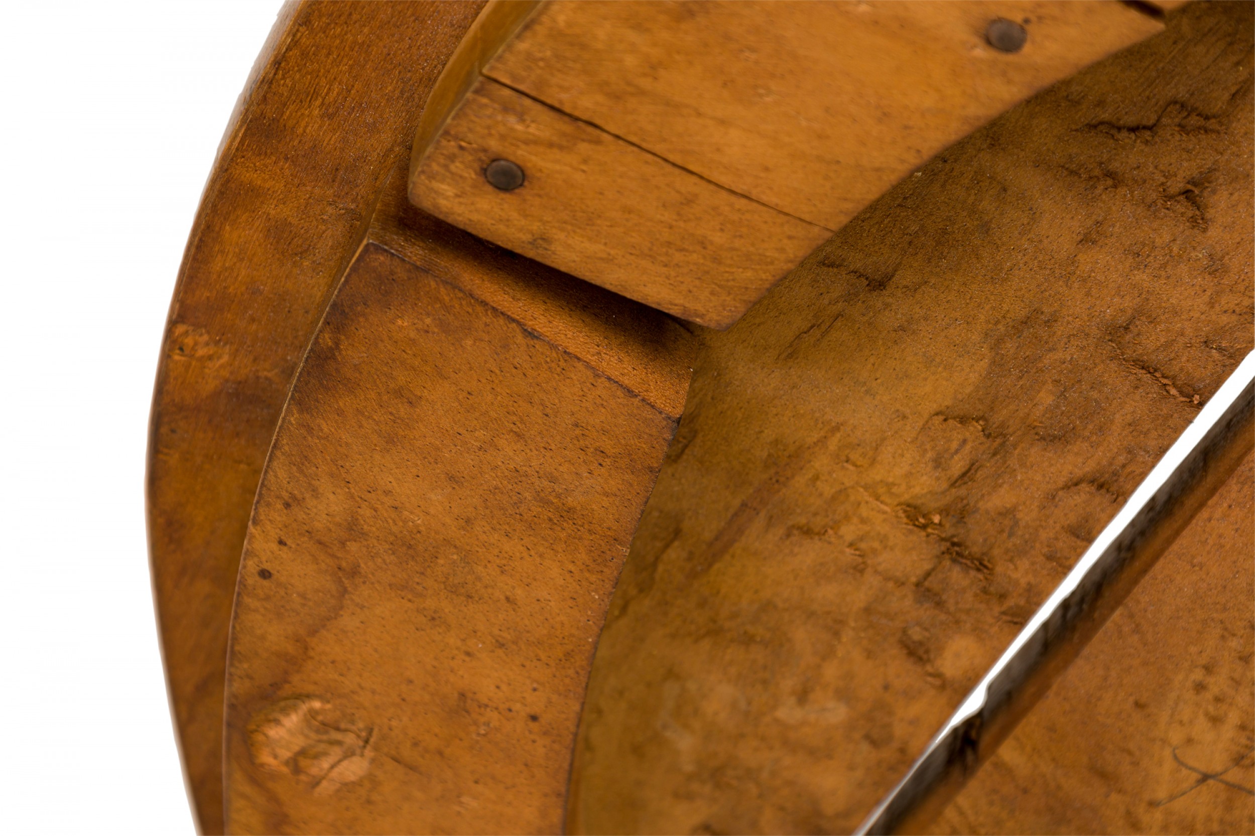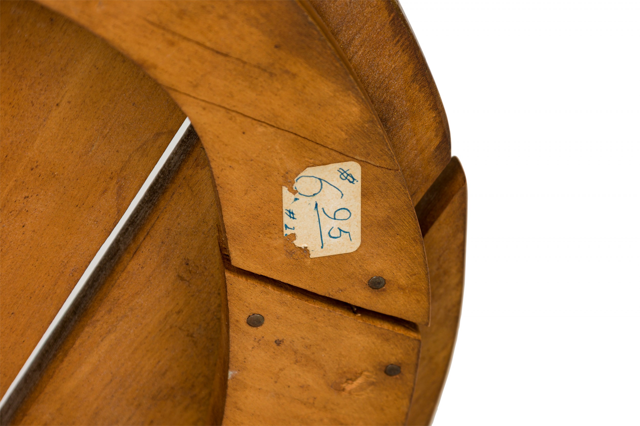 Style: Mid-Century Materials & Techniques: Iron, metal, wood Category: Tables Condition: Wear to tabletop consistent with use. Good; Wear consistent with age and use