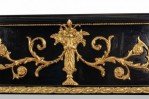 PAIR of Italian Neoclassic-style (20th Century) black lacquered vertical wall mirrors with carved gilt swag and scroll design with an inner gilt beaded trim. (PRICED AS PAIR)