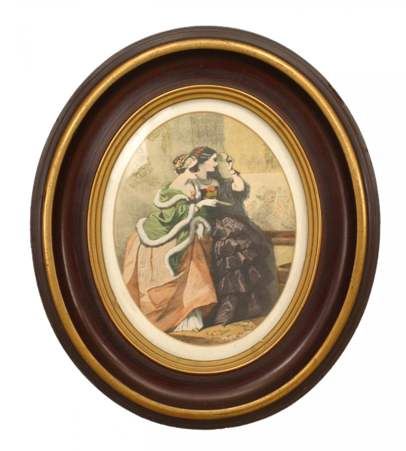 3 American Victorian mahogany and gilt trimmed oval framed prints with figures of ladies (PRICED EACH)