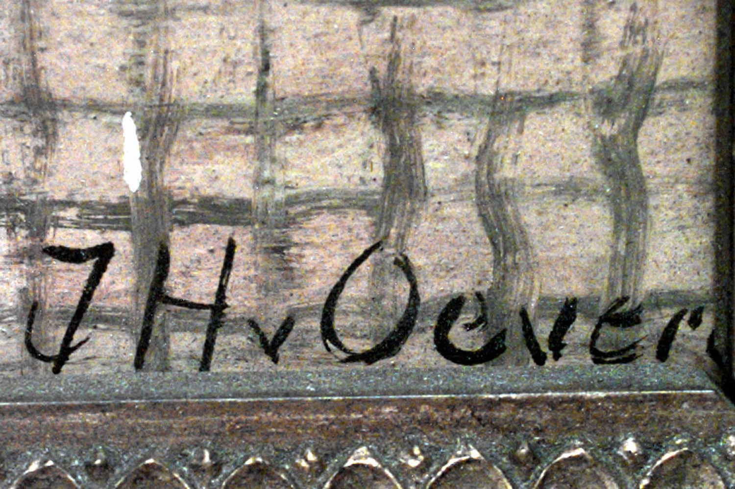 French Victorian gilt framed oil painting of architectural street scene with red building..