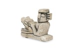 Vintage Chac Mool sculpture of a divine figure holding a bowl over a mythological creature.