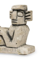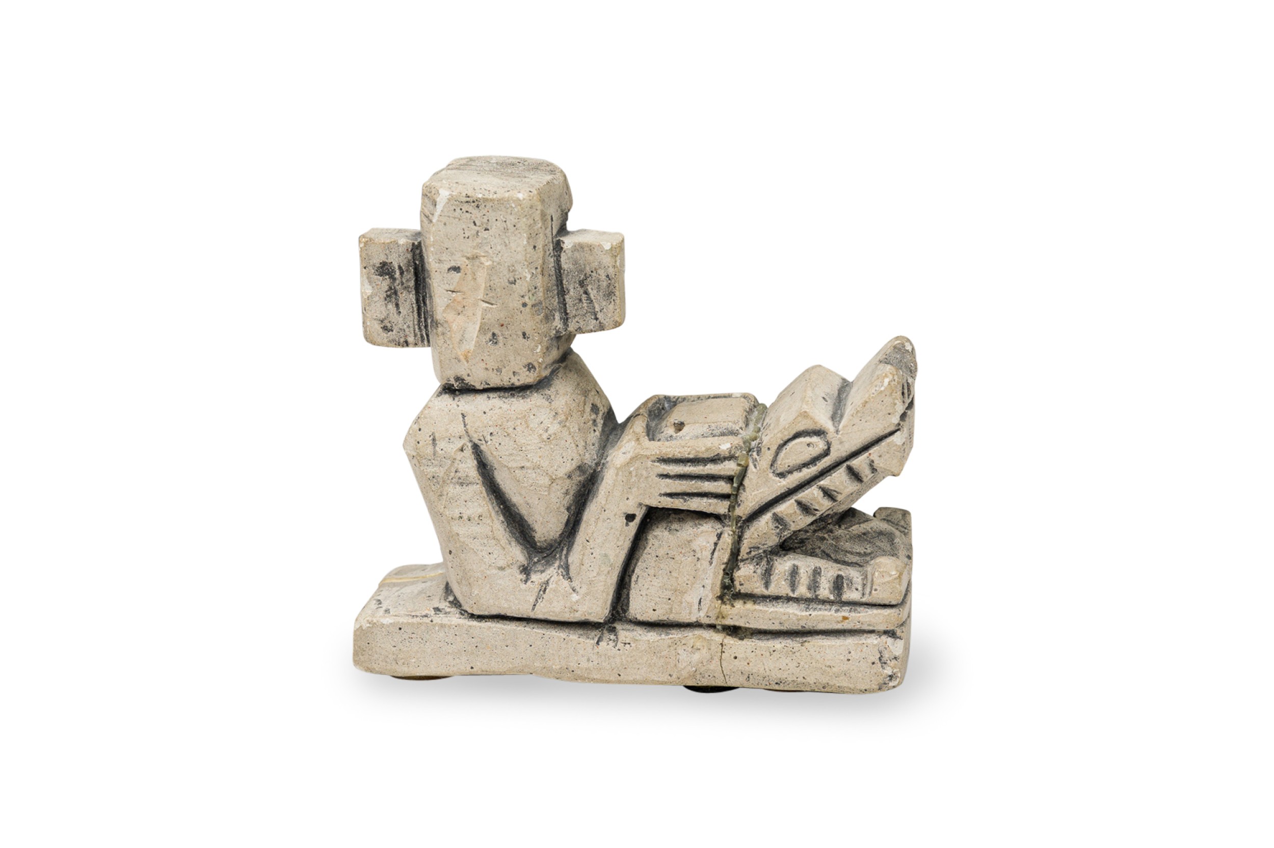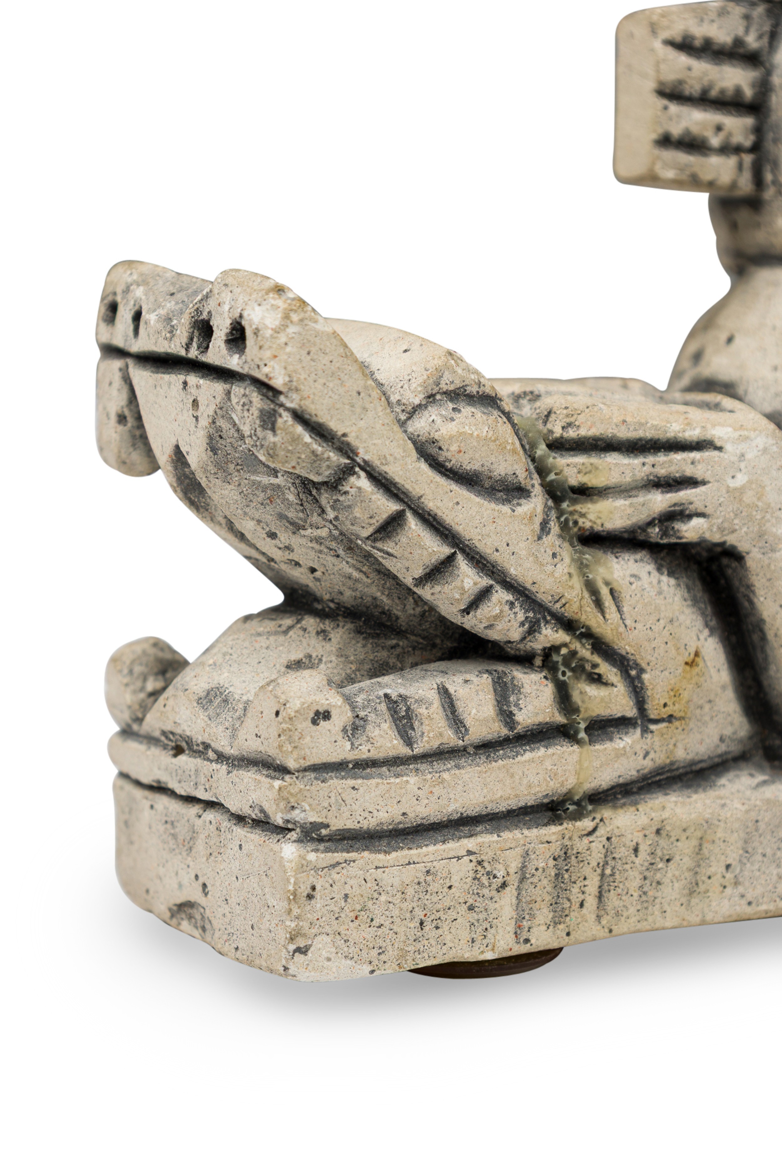 Vintage Chac Mool sculpture of a divine figure holding a bowl over a mythological creature