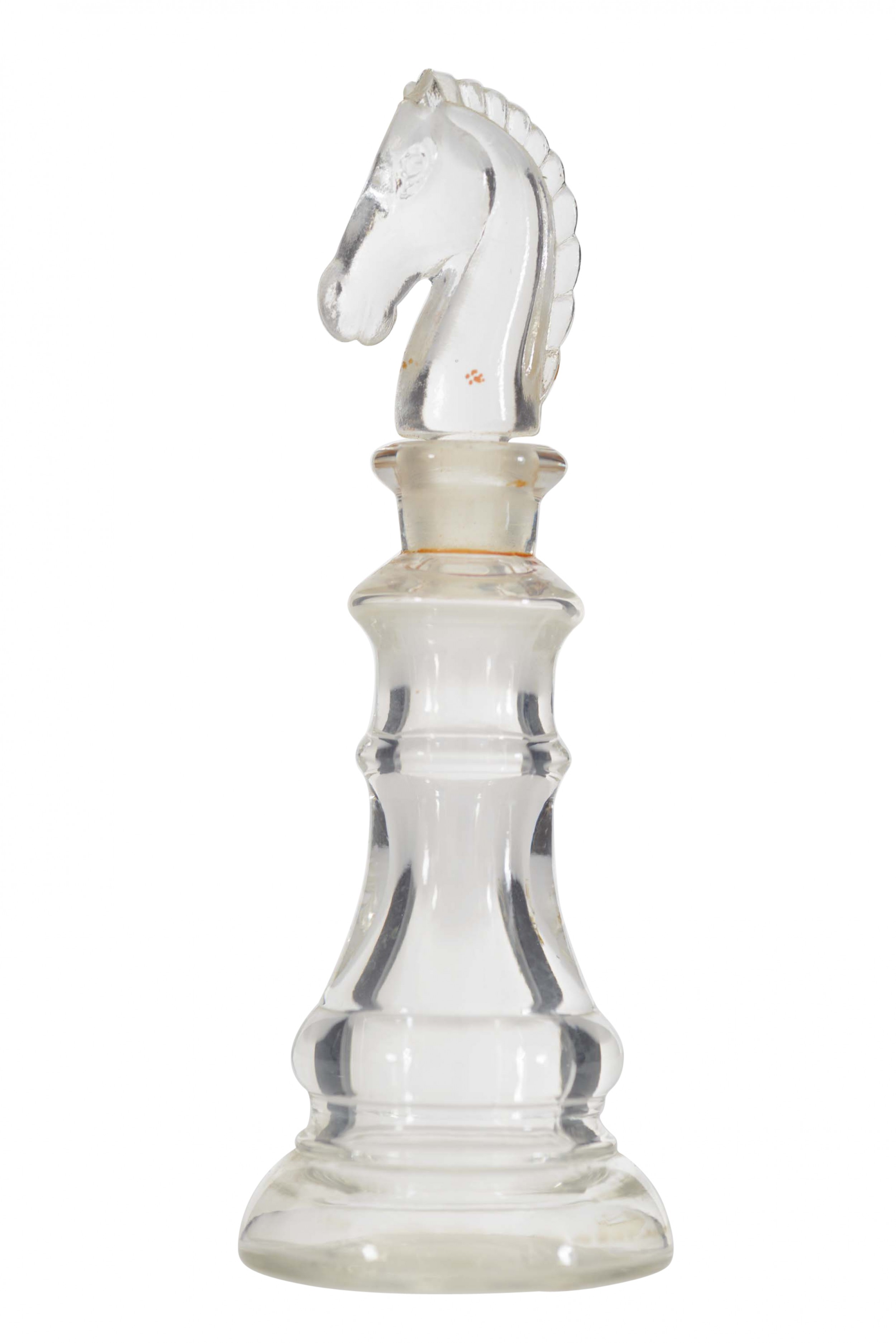 Vintage clear glass perfume bottle and stopper (MARY CHESS) shaped as a chess knight piece