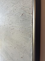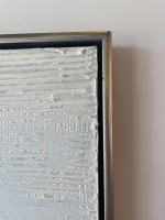 Contemporary oil on canvas painting depicting a ridge textured abstract composition in white with a grey underpainting in a silver leaf frame (RICARDO RUMI)
